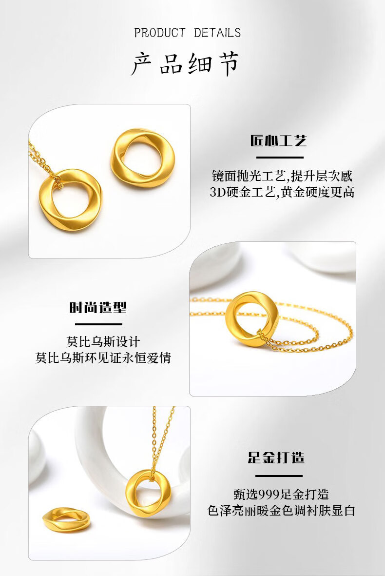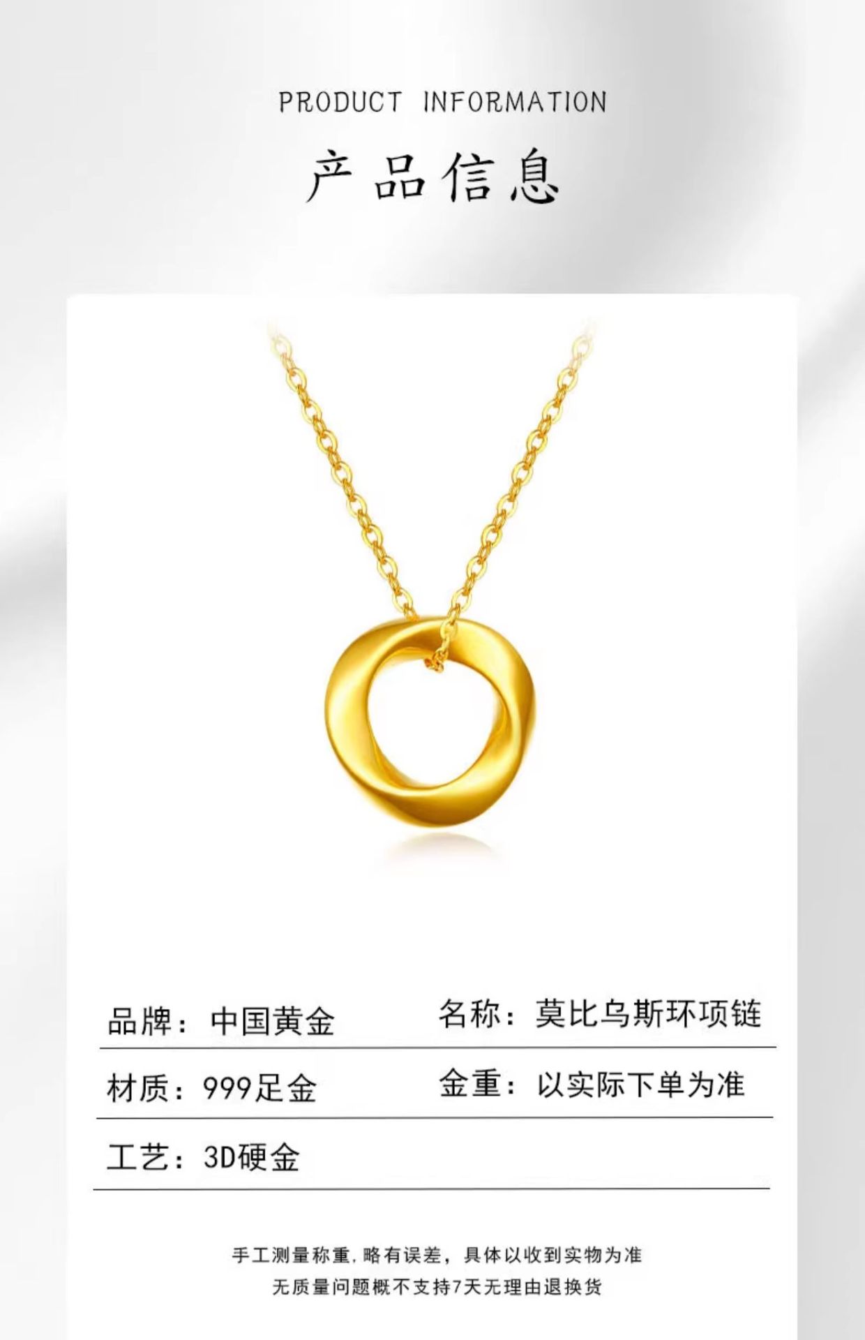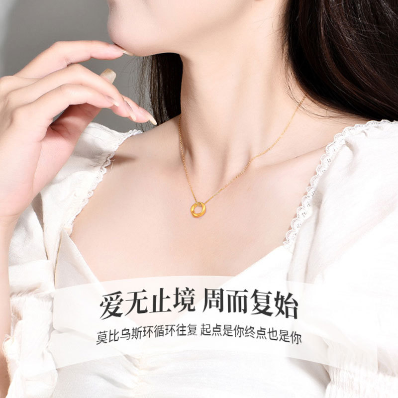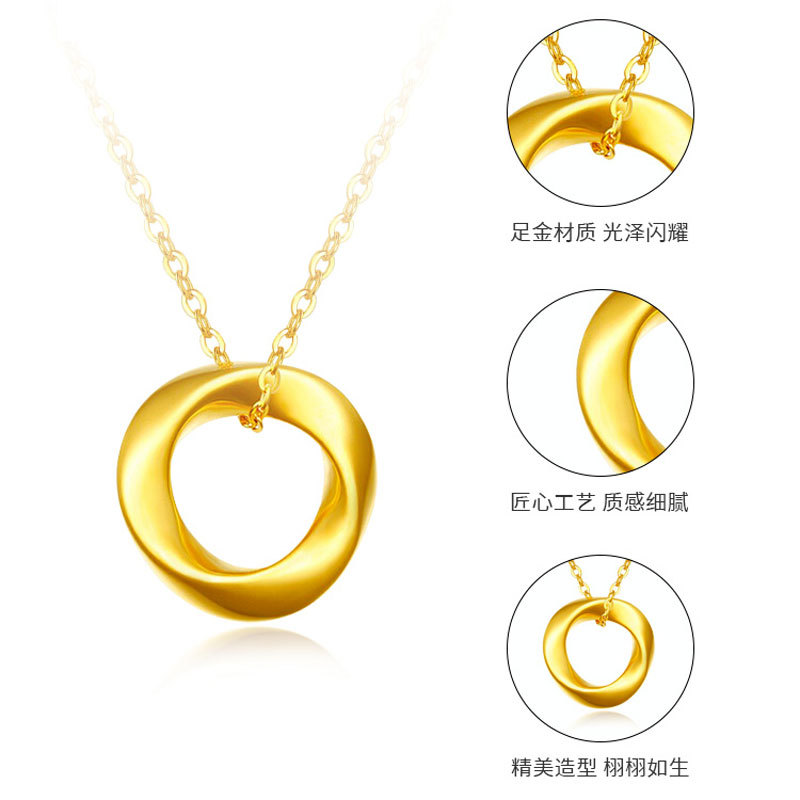 Золотой кулон Мёбиуса из чистого золота 999 пробы, 3D-застежка из твердого золота, колье на ключицу, подарок для любителей вина и косметической индустрии