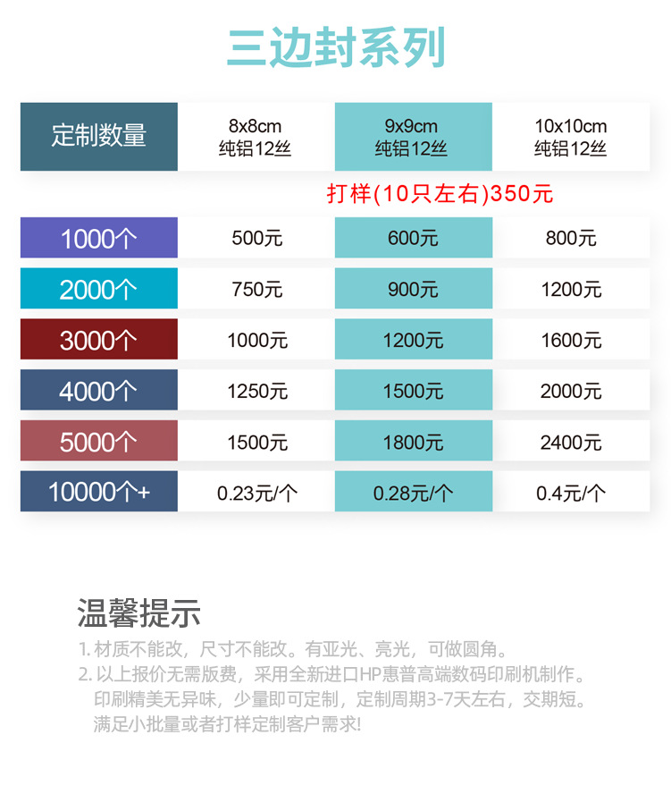 Пользовательский размер; Средний пакет с уплотнением 15x5,5x2,5 см.; Средний пакет с уплотнением 13x5,5x2,5 см.; Средний пакет с уплотнением 10,5x5x2 см.; Трёхсторонний уплотнитель 8x8 см; 8,5x6,5 см, трехстороннее уплотнение.