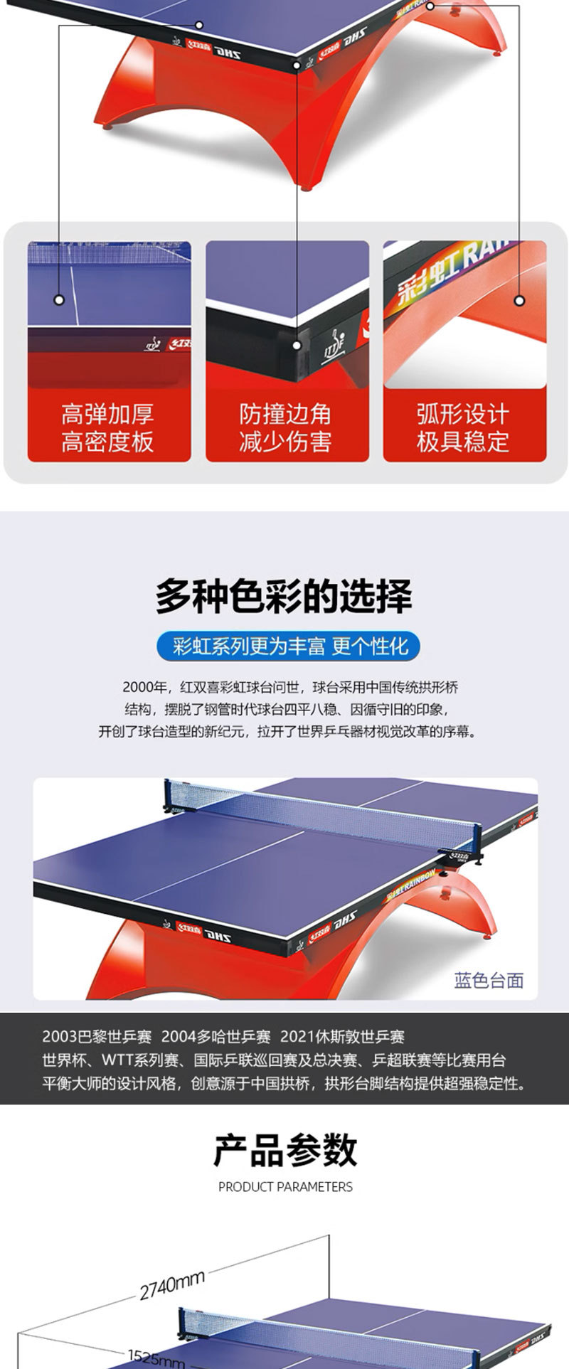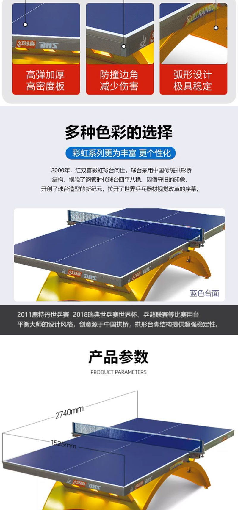 Теннисный стол Red Double Happiness для соревнований и тренировок, большой теннисный стол «Радуга» для детей, складной теннисный стол для домашнего использования.