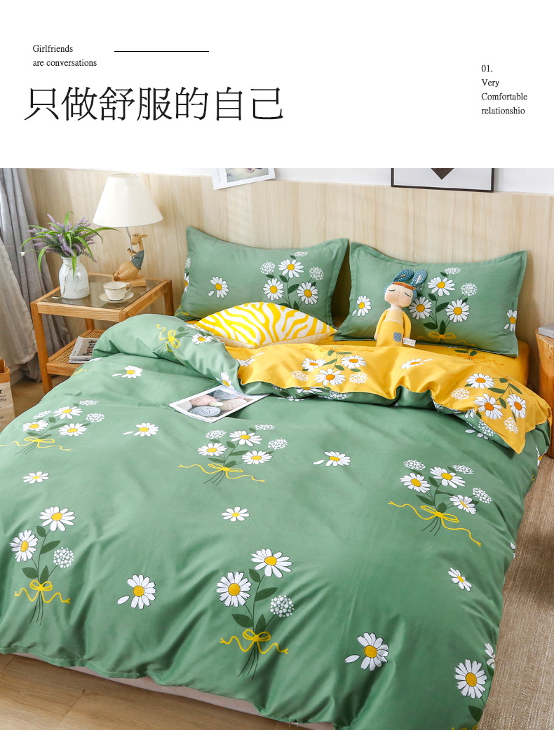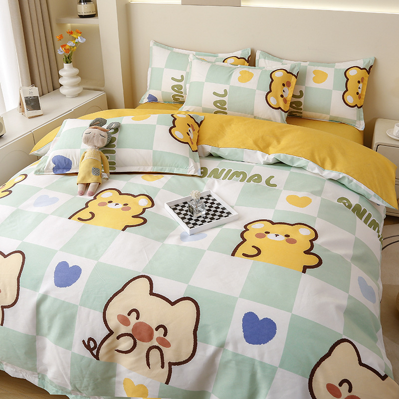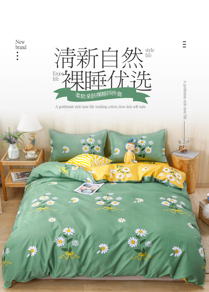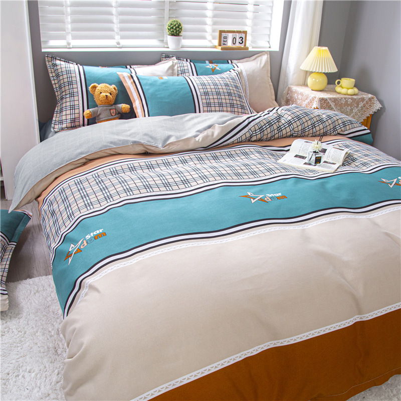 Ins небольшой свежий комплект постельного белья из четырех предметов, приятный для кожи, промытый хлопок, матовый студенческий простыни, пододеяльник, комплект из трех предметов, оптовая продажа