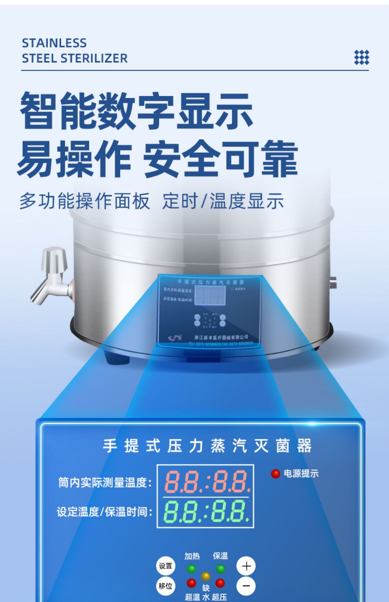 Вертикальный паровой стерилизатор, портативный лабораторный стерилизатор высокого давления и температуры, паровой стерилизационный аппарат.