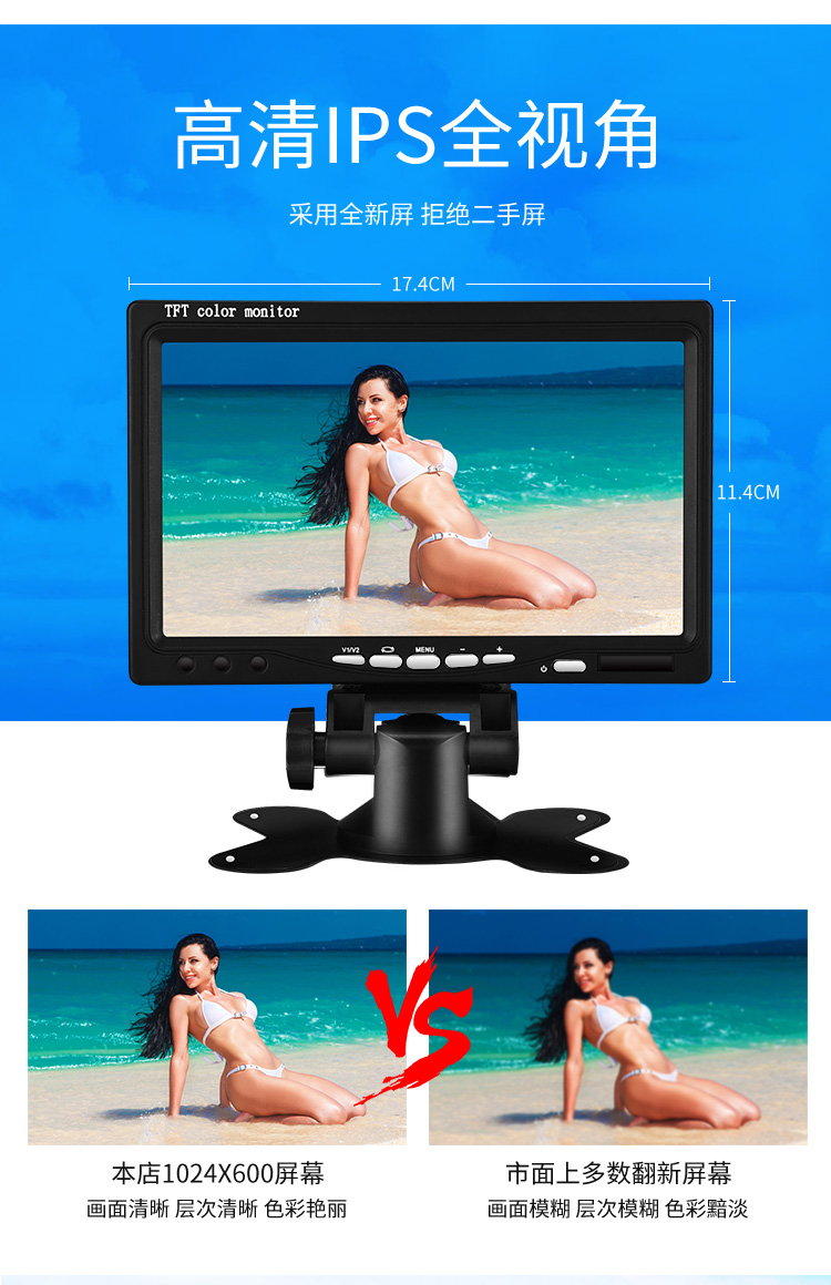 Маленький телевизор автомобильный экран портативный HD монитор мини 7-дюймовый настольный маленький домашний экран HDMI малиновый пирог