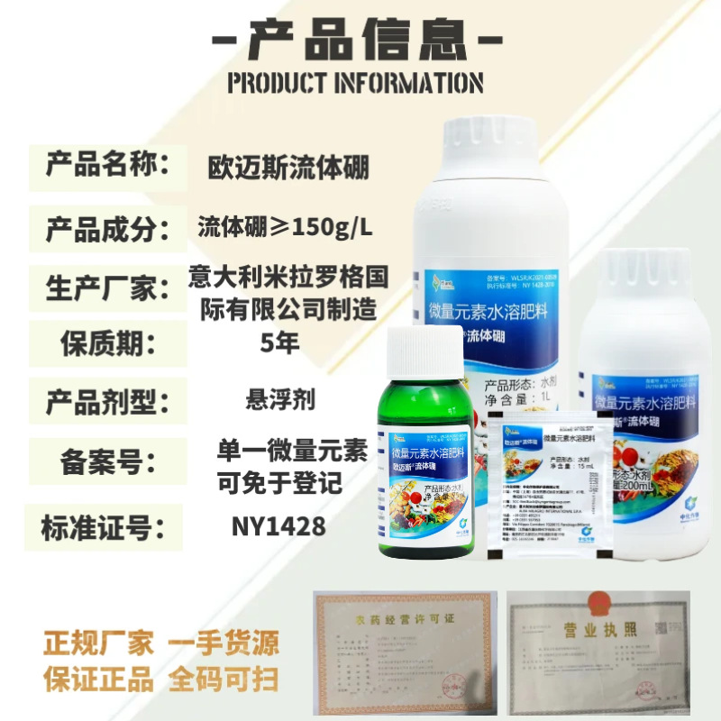 Omax Fluid Boron импортированное борное удобрение, водорастворимое удобрение с микроэлементами, улучшает обильность плодоношения, уменьшает деформацию и повышает урожайность, листовое удобрение