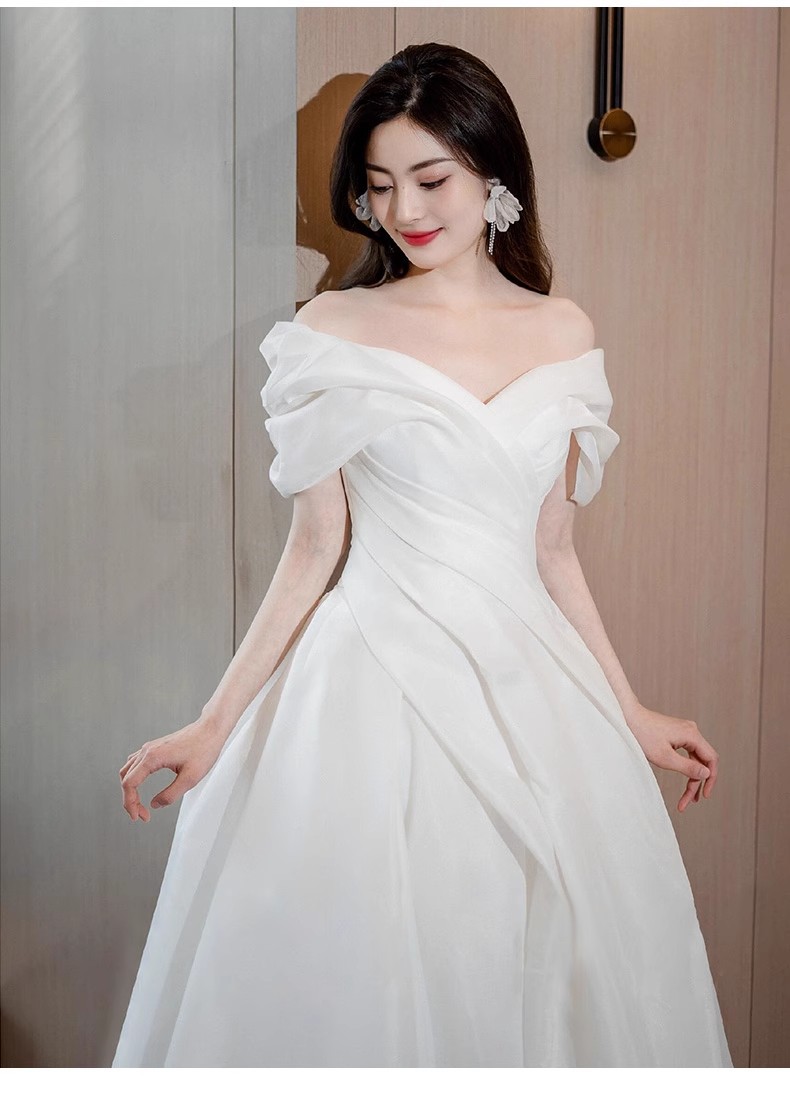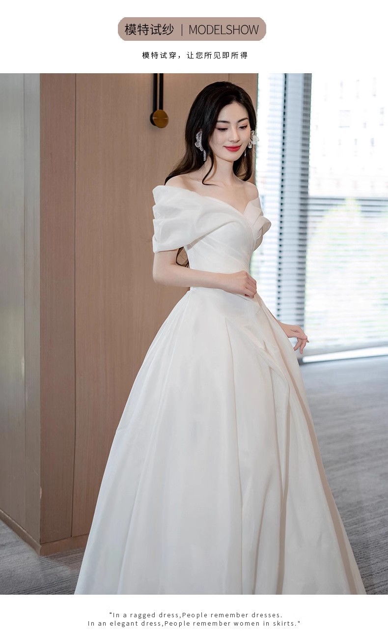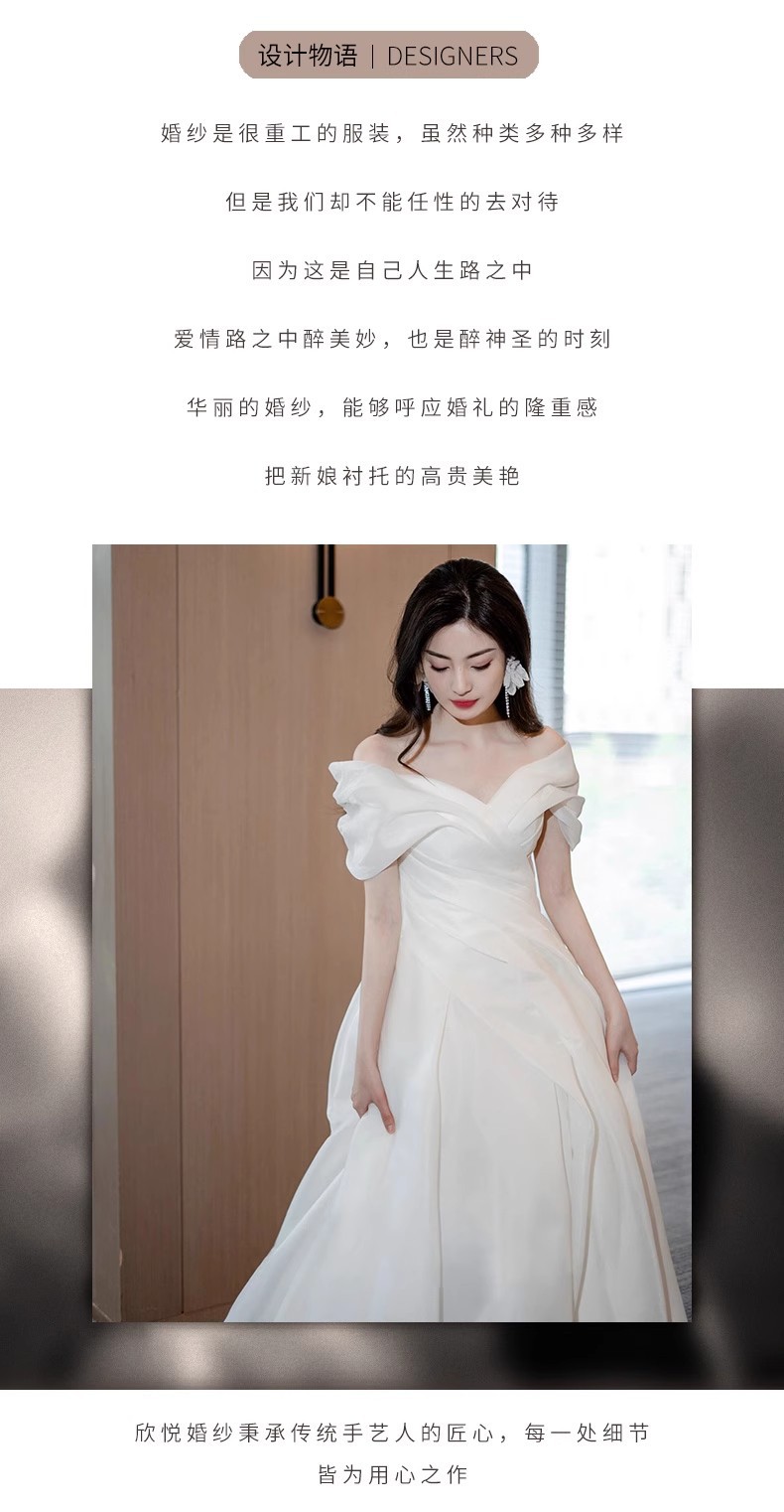 Легкое свадебное платье на одно плечо для невесты, новинка 2025, французская атласная основная пряжа, высококачественная текстура, маленькая простая прогулочная пряжа
