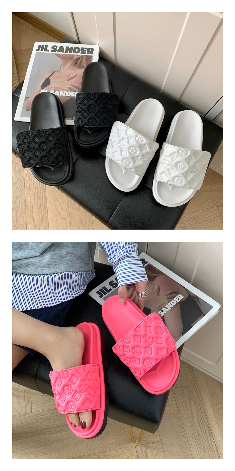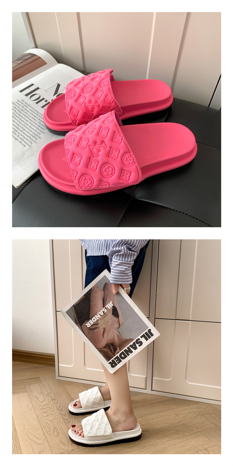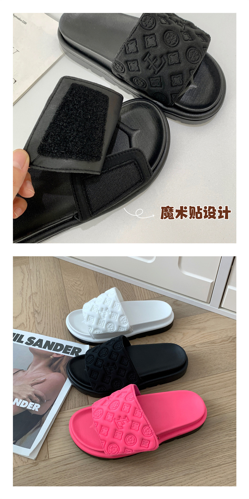Липучка шлепанцы женские летние носки 2024 новый сетчатый красный дикий толстый фасон мягкая подошва нескользящие нишевые холодные тапочки