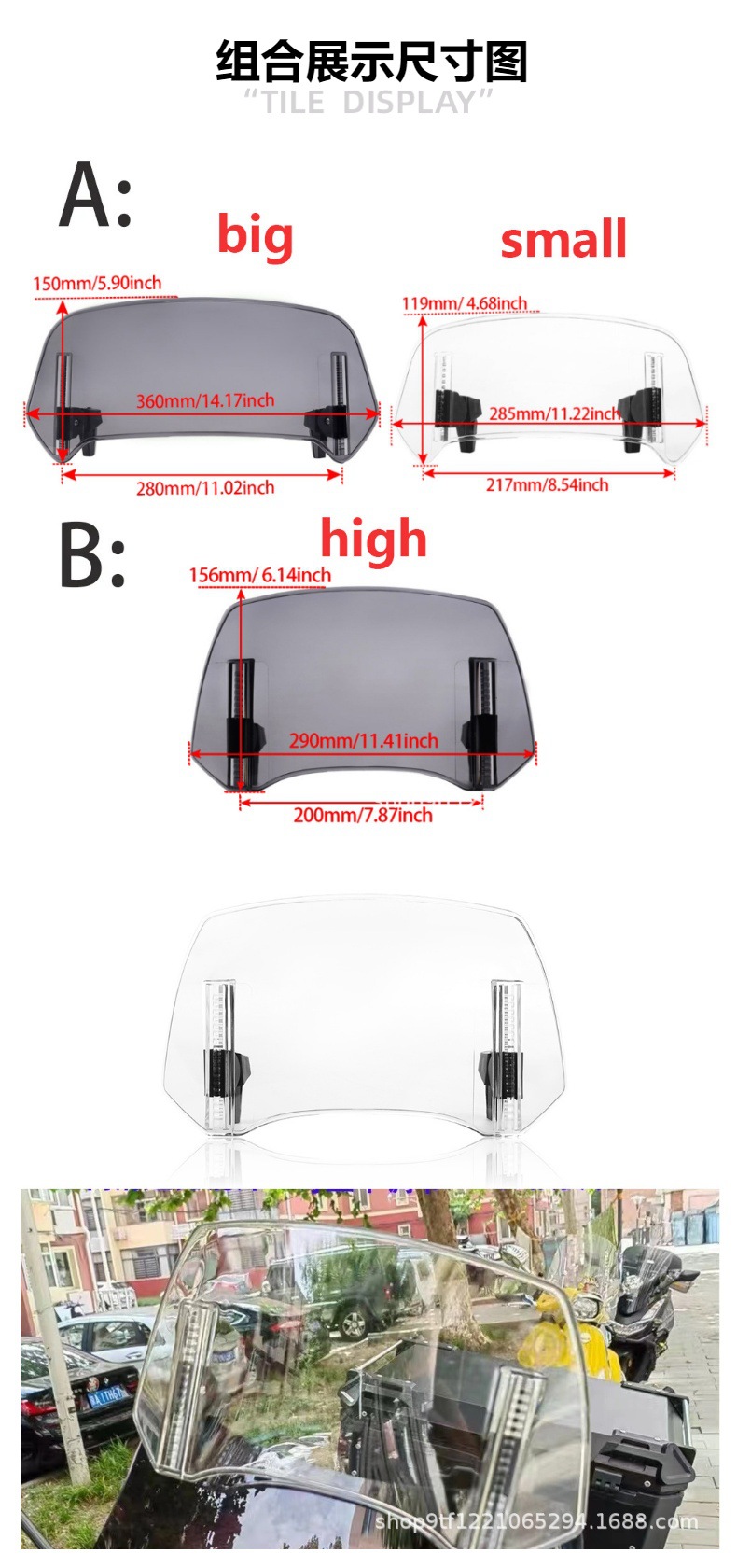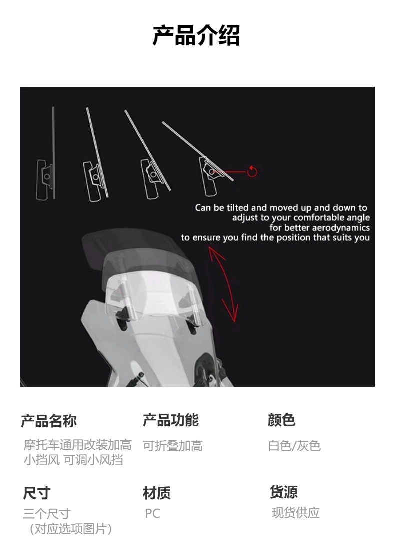 Популярный трансграничный товар, подходящий для модификации мотоциклов Kawasaki, Honda, BMW, Yamaha, Suzuki, регулируемый по высоте ветровой экран, настраиваемый ветрозащитный экран.
