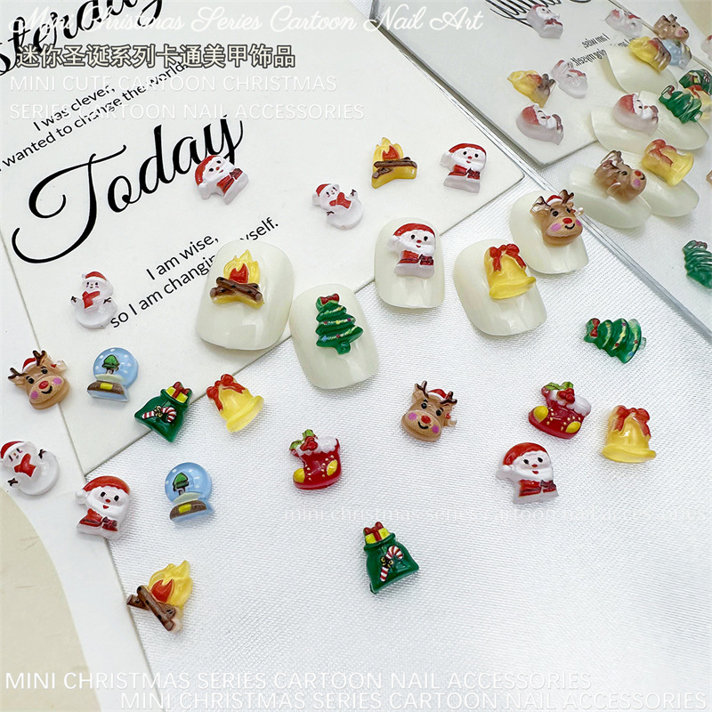 Новые мини-рождественские серии милые мультяшные маникюрные безделушки ногтей бриллианты diy украшения для волос аксессуары смолы
