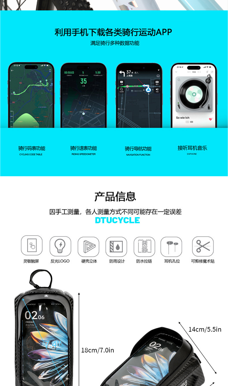 DTUCYCLE东途新款自行车防水前梁包 自主设计和生产,已申请专利,货源保证,价格保证,防侵权保证,量大联系客服从优!