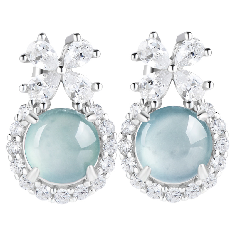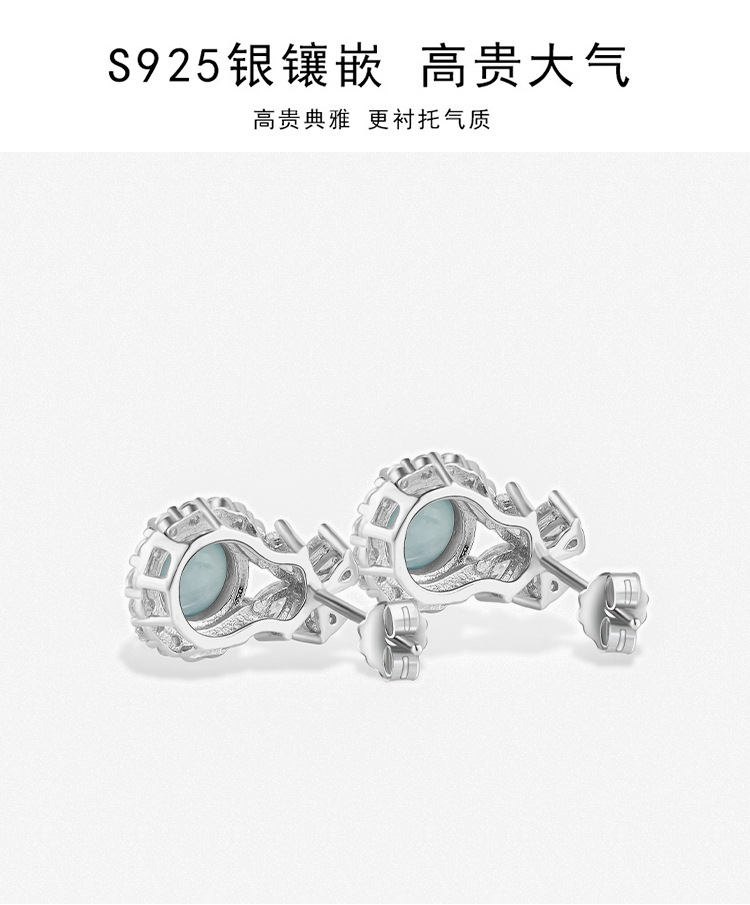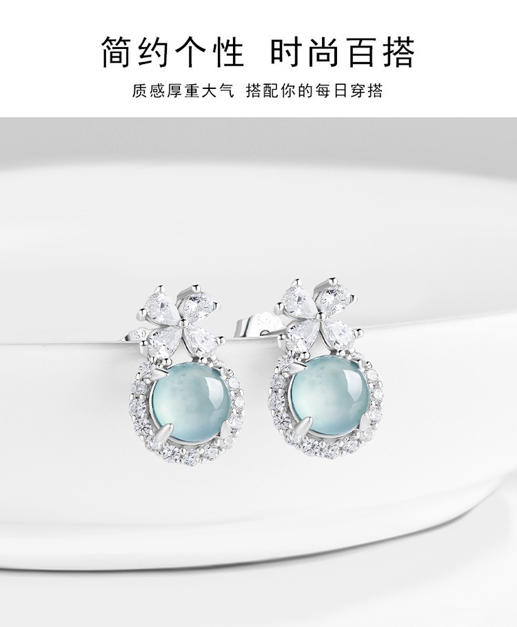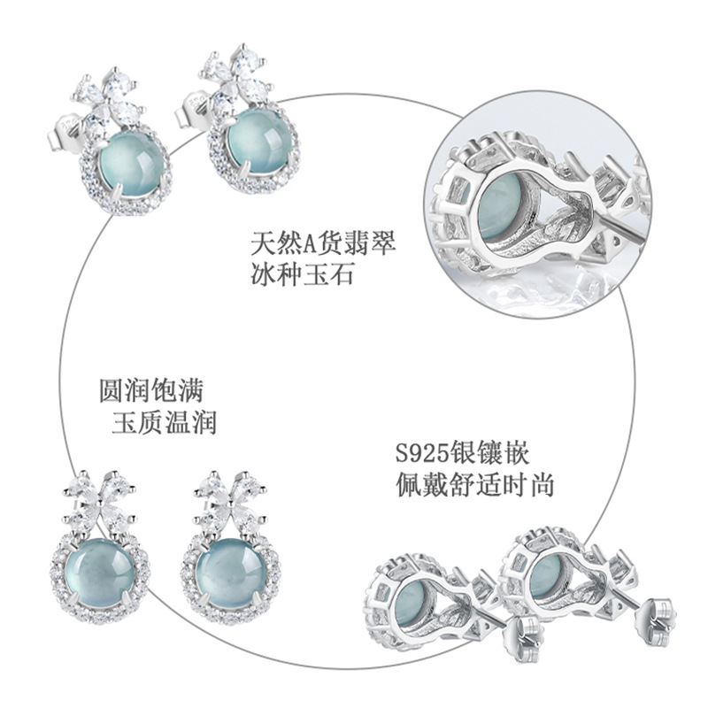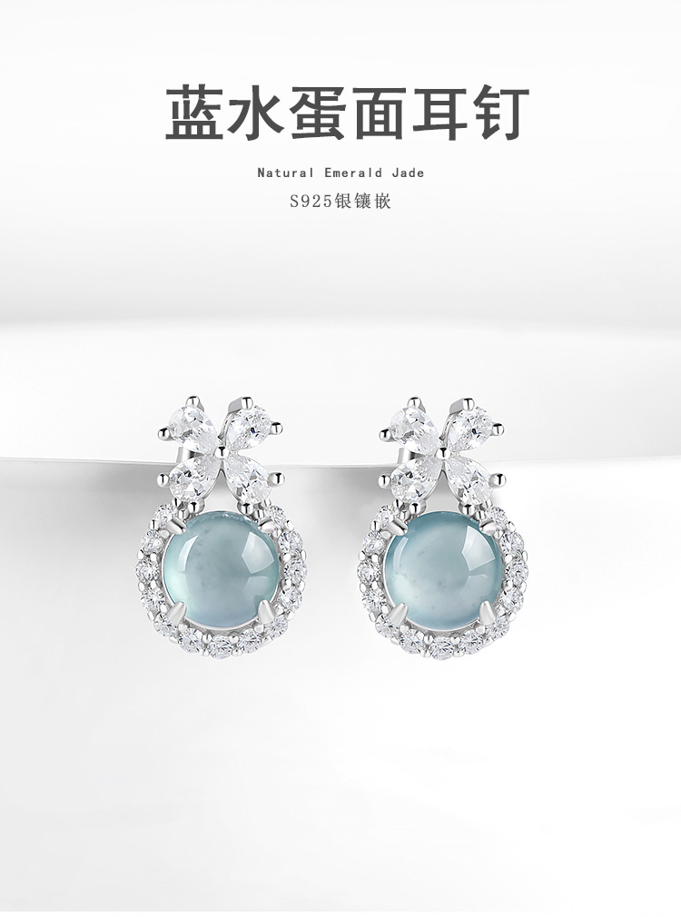 Натуральный товар Изумрудная голубая вода яичная лапша ушные гвозди ледяной нефритовый камень S925 Серебряная инкрустированная мода высокого класса женские серьги оптом