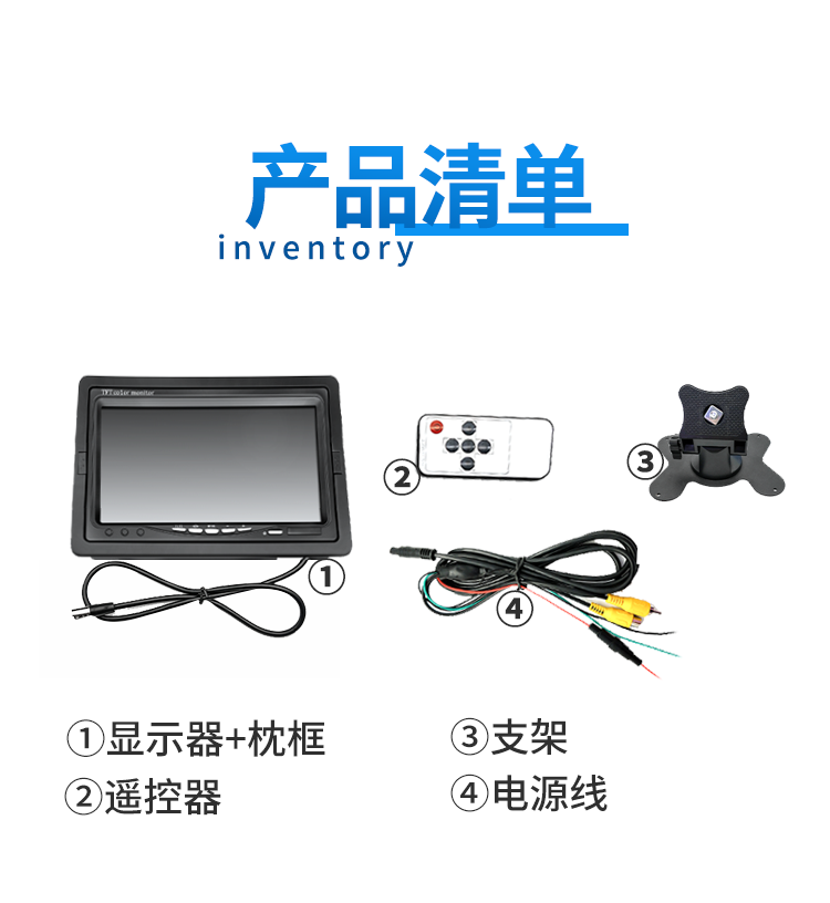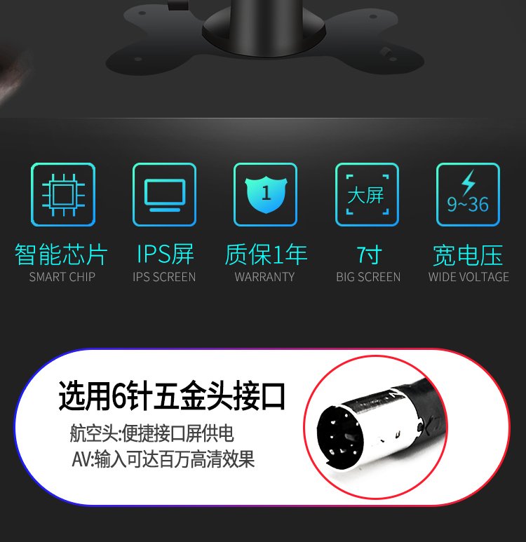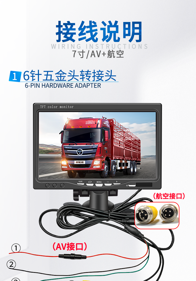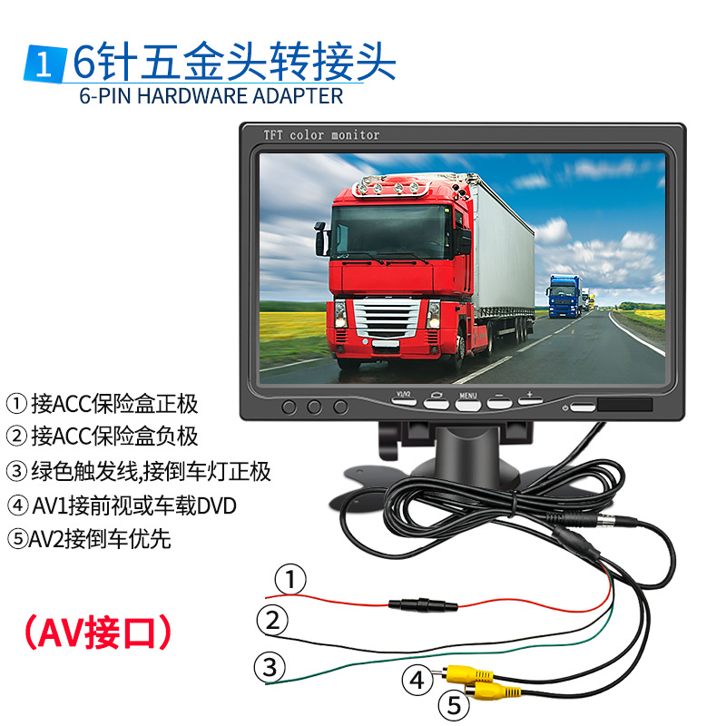 7.6inch pin-AV (800*480) с одним экраном; 7.6inch pin-AV (IPS 1024*600) с одним экраном; 7.6inch Pin-Aviation (800*480) с одним экраном; 7.6inch Контакт-Авиация (IPS 1024*600) Один экран; 7.5inch Золотая головка AV: обратное изображение; 7.5inch Золотая головка Airlines: обратное изображение; Реверс + дисплей переключения изображений наблюдения; 7.2inch передний и задний рекордер + карта 64G A12; 7.6inch pin-AV (специальное предложение 80*272); 7inch ahd обратное изображение DC701