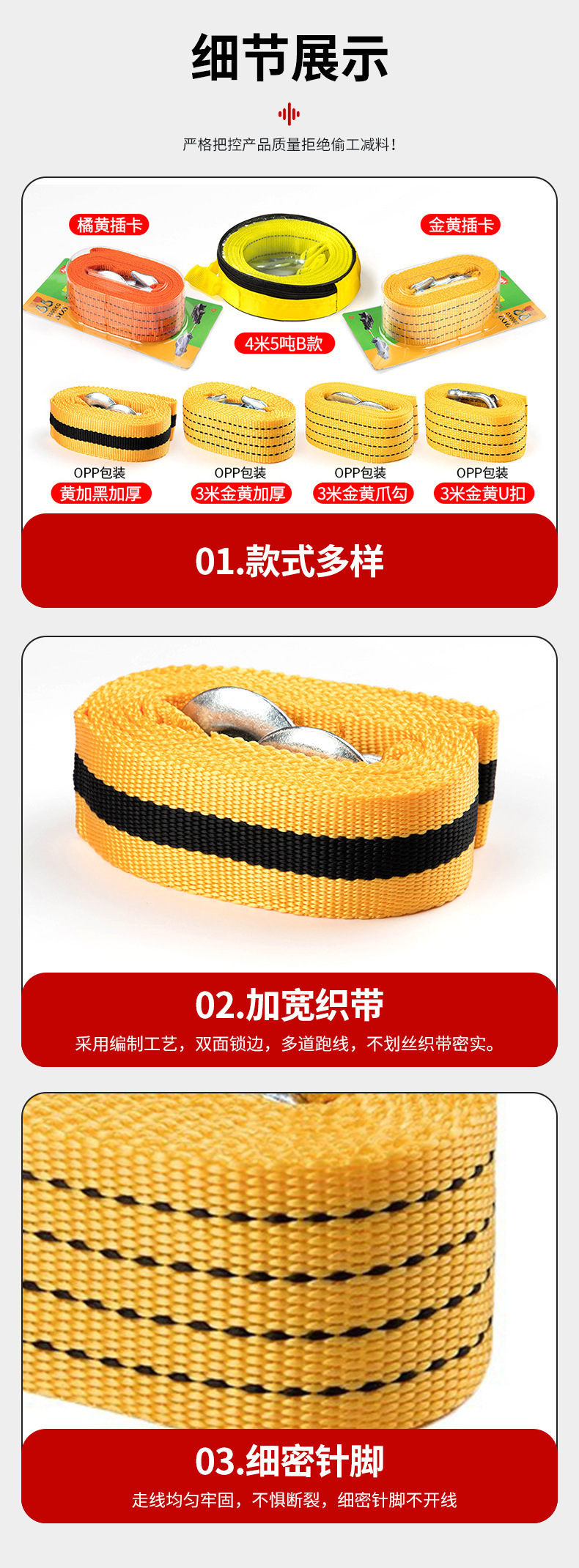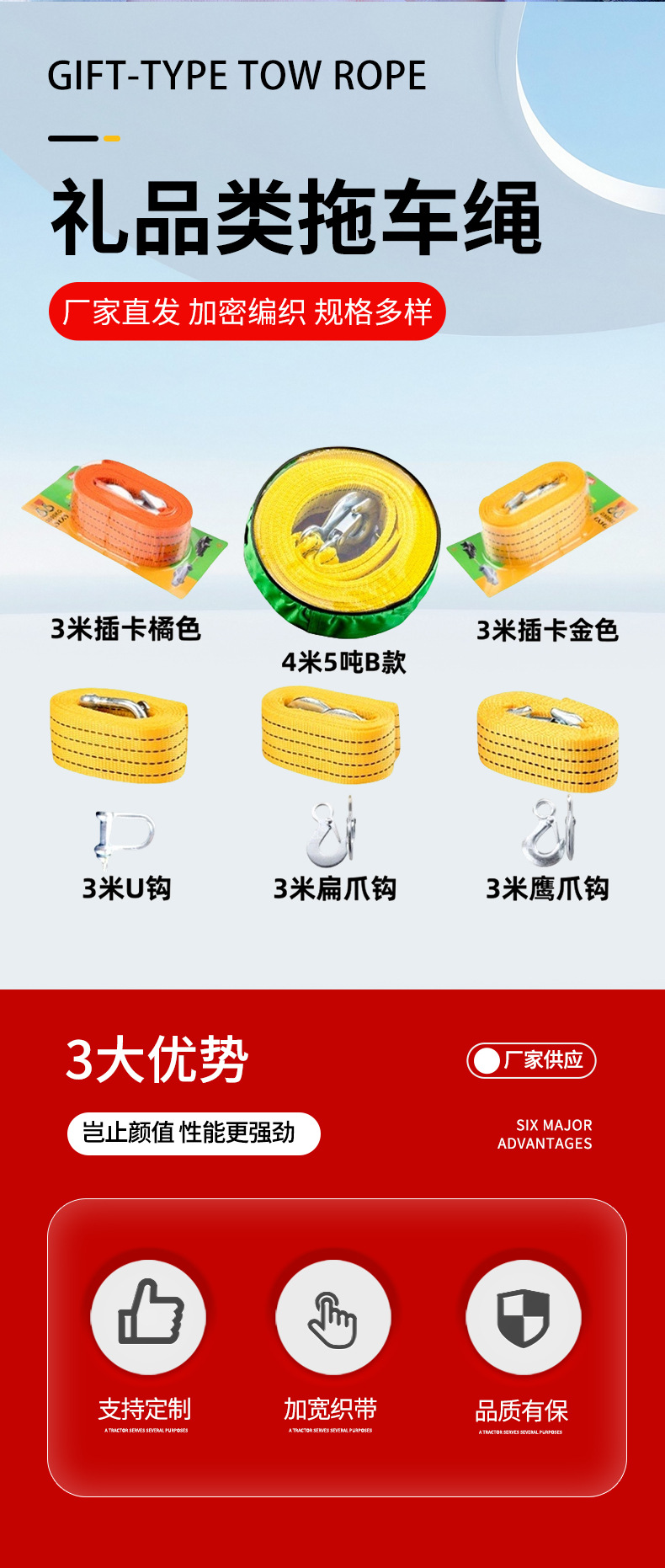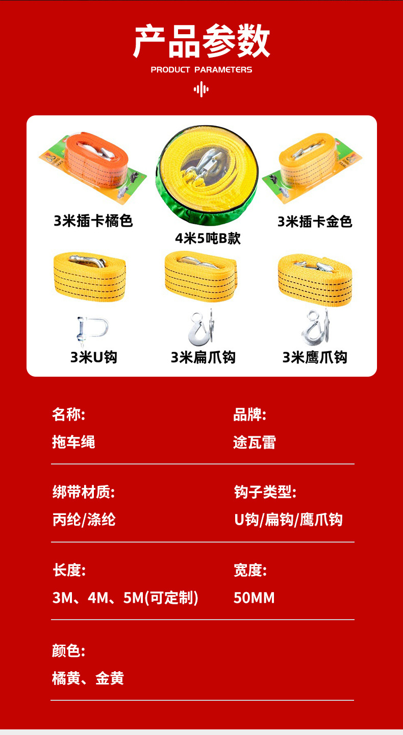 3m U-образный крючок 4cm [опп]; 3.3m тонна U-образная пряжка; Коготь на 3.3m тонны; 3.3m тонны карты золота; 3.3m тонна сменная карта оранжевого цвета; 4.3m тонны карты золота; 4.3m тонна сменная карта оранжевого цвета; 3m однослойный утолщенный коготь; 4m однослойный утолщенный коготь; 3m желтый плюс черный утолщенный коготь; 4m желтый плюс черный утолщенный коготь; 4.5m тонн двухслойный U-образный крюк OPP; 4.5m тонна двухслойный круглый мешок с U-образным крюком; 4.5m Тонный двухслойный крюк с захватом - Упаковка OPP; 4.5m тонн двухслойная круглая сумка с крючком-когтем; 5.5m тонн однослойный крюк с когтями; 5.5m тонн двухслойный крюк с когтями; Мягкая дужка прицепа; 5.1m тонн [белая ночная светоотражающая модель]; Светящаяся модель 5.8m тонн.; Круглая веревка 5.5m тонна + небольшой стальной крюк U-образной формы.; Круглая веревка 5.1m тонна + американский стальной крюк среднего размера.; Маленький крючок из стали 5m +A3, 10 тонн [по поводу указанных цветов обращайтесь в службу поддержки клиентов]
