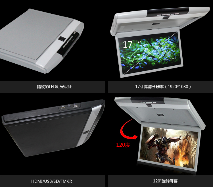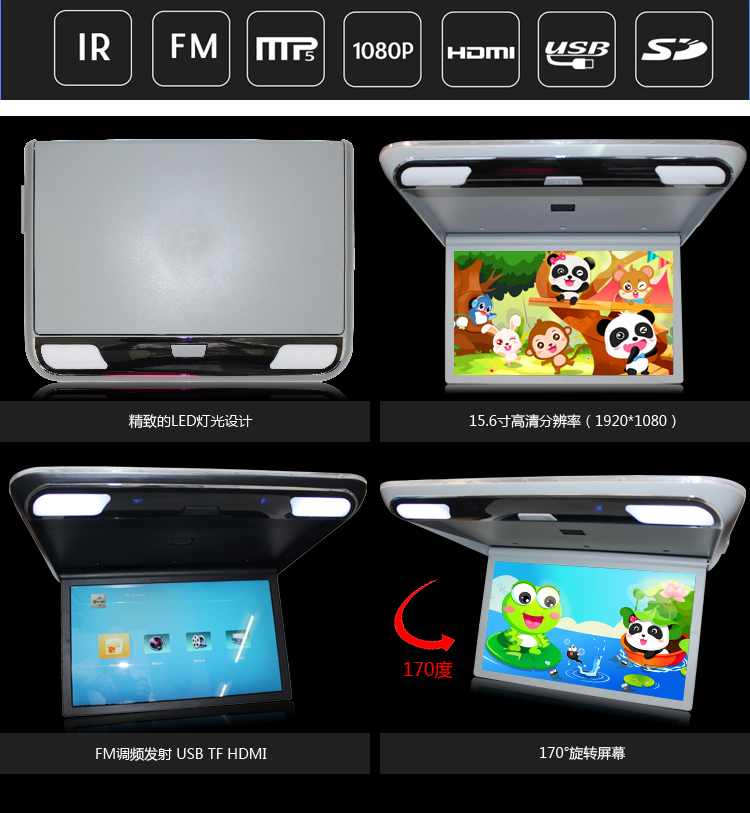 15-17-19 дюймов тонкий и легкий HD потолок экран автомобильный FM-телевизор 1080P монитор MP5