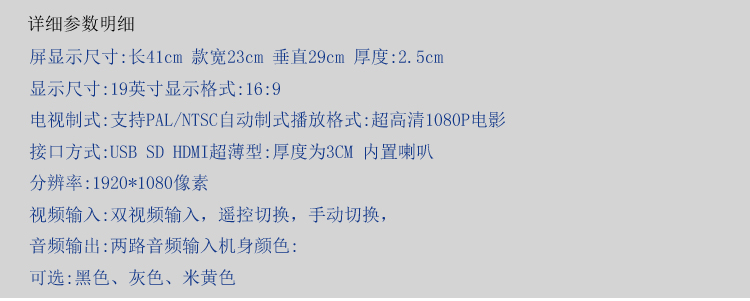 Тип A 15inch Серый MP5+HDMI; Тип A 15inch черный MP5+HDMI; Модель A 15-дюймовый бежевый MP5+HDMI; Тип A 17inch Серый MP5+HDMI; Тип A 17inch черный MP5+HDMI; Модель A 17-дюймовый бежевый MP5+HDMI; Тип B 19inch Расширенный свет MP5 (цвет примечания) один; Тип C 19inch MP5 (цвет зауважения) один; Тип A 15inch серый MP5+HDMI+ проекция экрана мобильного телефона; Модель A 15-дюймовый Mi MP5+HDMI+проекция экрана мобильного телефона; Тип A 15inch черная проекция экрана мобильного телефона MP5+HDMI+; Тип A 17inch серый MP5+HDMI+ проекция экрана мобильного телефона; Модель A 17-дюймовый Mi MP5+HDMI+проекция экрана мобильного телефона; Тип A 17inch черная проекция экрана мобильного телефона MP5+HDMI+; Модель B 19inch MP5+HDMI встроенный экранный проекционный счетчик; Модель B 19inch MP5+HDMI встроенный экран черный комплект; Модель B 19inch MP5+HDMI встроенный экран серый комплект; Модель C 19inch MP5+HDMI-метр, комплект проекции внешнего экрана; Модель C 19inch MP5+HDMI серый комплект проекции внешнего экрана; Модель C 19inch MP5+HDMI черный комплект проекции внешнего экрана; Тип A 15inch сетевое телевидение 128G голосовое; Тип A 17inch сетевое телевидение 128G голосовое; Модель B 19inch Сетевое телевидение 128G голосовое; Тип A 15inch сетевое телевидение 128G голосовой + пара контроллеров; Тип A 17inch сетевое телевидение 128G голосовой + пара контроллеров; Тип B 19inch Сетевое телевидение 128G голосовой + пара контроллеров; Стиль двойной маркировки (сетевой телевизор опционально) 100 000 онлайн-беблиотека без VIP