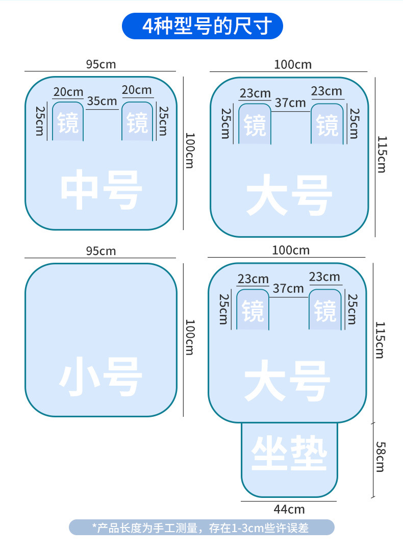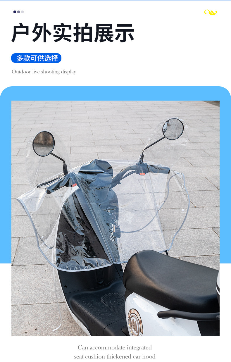 Беззеркальный чехол, небольшой дождевик (прозрачная модель), без зеркального чехла; Маленький дождевик (прозрачная версия), включая чехол для зеркала; Большой дождевик (прозрачная версия) с зеркальной крышкой; Большой дождевик + подушка сиденья (прозрачная модель), включая чехол на зеркало
