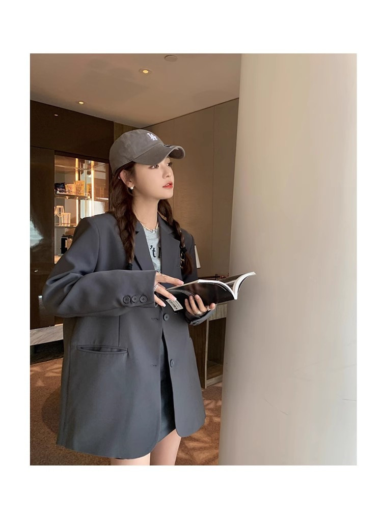 Серый женский блейзер, новая модель весна-осень 2026, весенний сезон, элитный повседневный стиль, маленький размер, блейзер в корейском стиле.