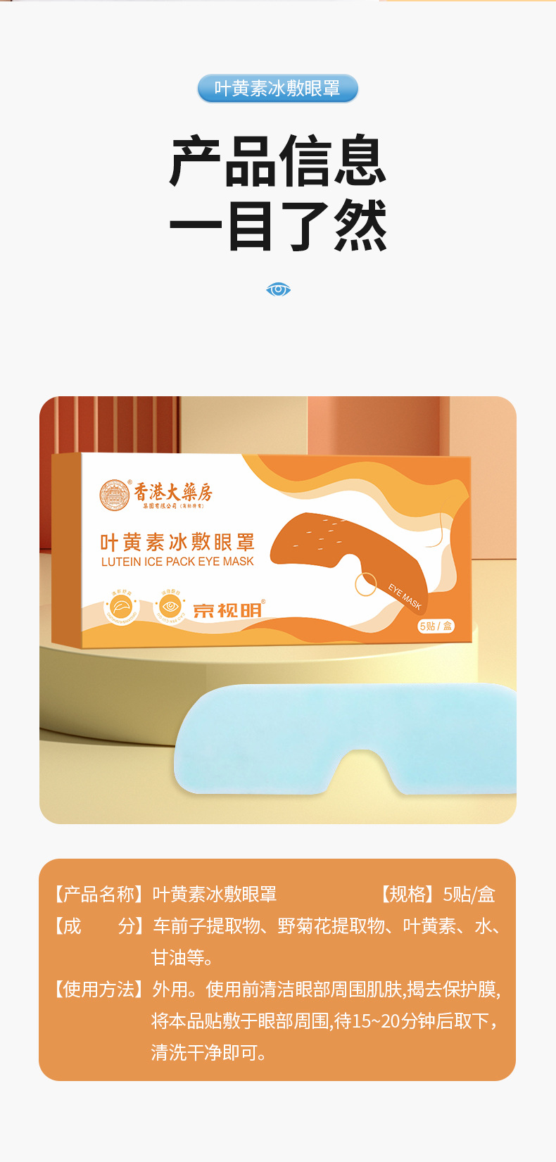 Маска для глаз с лютеином от Hong Kong Pharmacy для снятия усталости глаз, охлаждающий патч, успокаивающий патч для глаз, успокаивающий и защищающий глаза.
