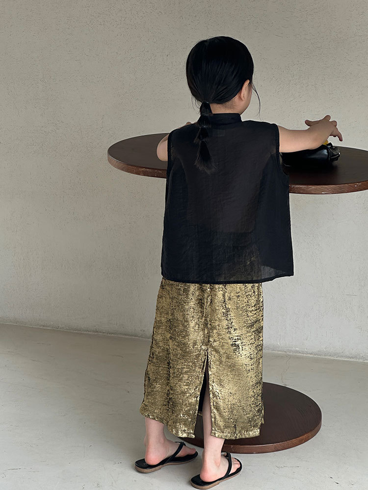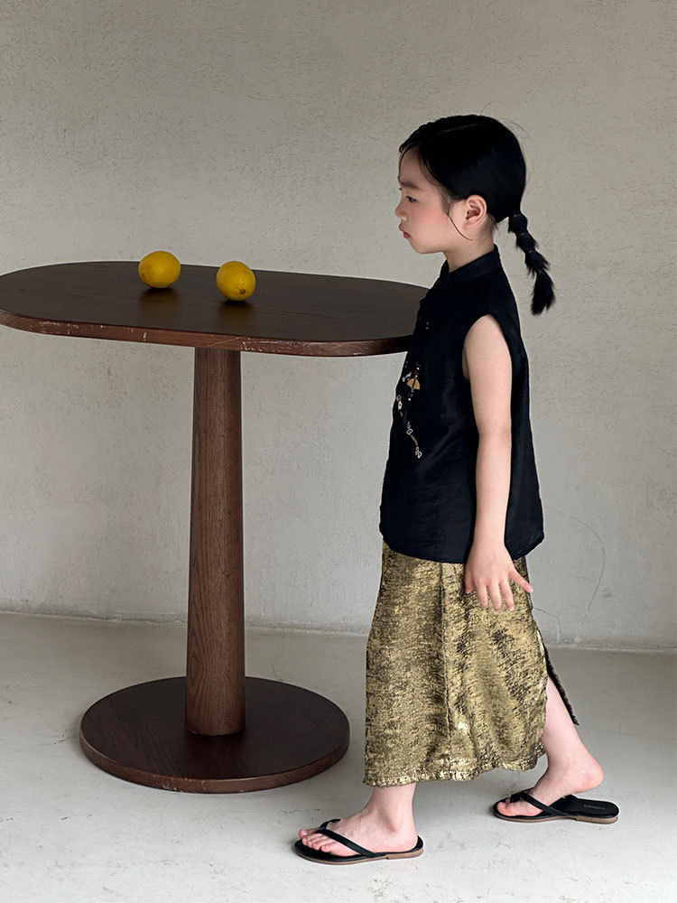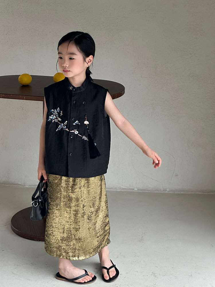 Девушки национальный топ 2024 летний новый новый китайский стиль с вышивкой сливы без рукавов жилет золотая юбка для волос