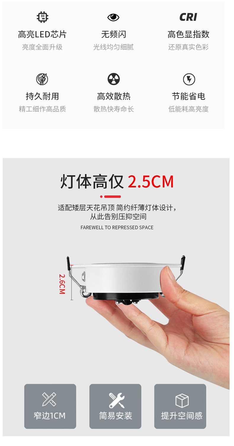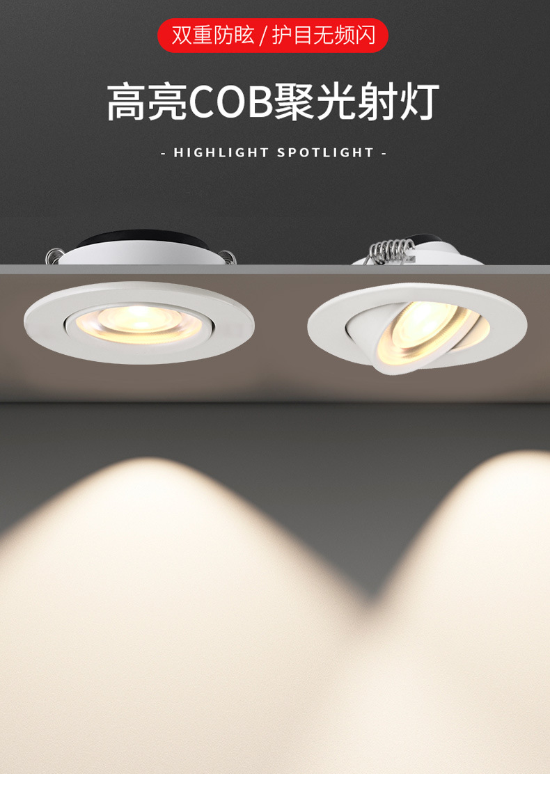 2025 новый тонкий светильник светодиодный потолочный светильник встроенный домашний антибликовый регулируемый угол небольшой холм прожекции