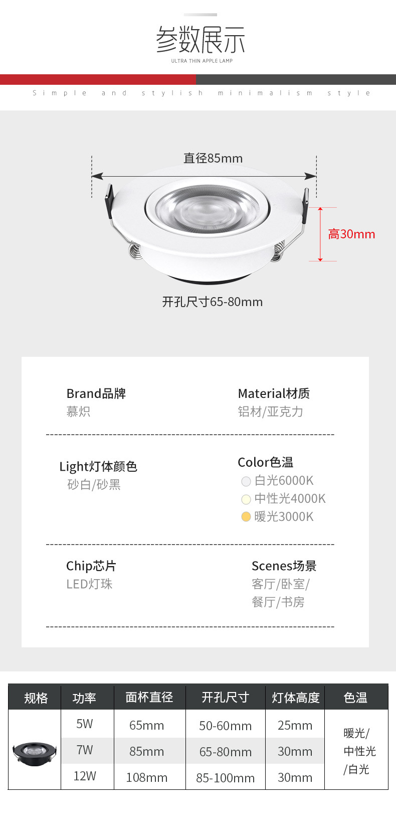 Белый корпус-5Вт-отверстие 50-60мм; Белый корпус-7Вт-отверстие 65-80мм; Белый корпус-12Вт-отверстие 85-100мм; Черный корпус-5Вт-отверстие 50-60мм; Черный корпус-7Вт-отверстие 65-80мм; Черный корпус-12Вт-отверстие 85-100мм