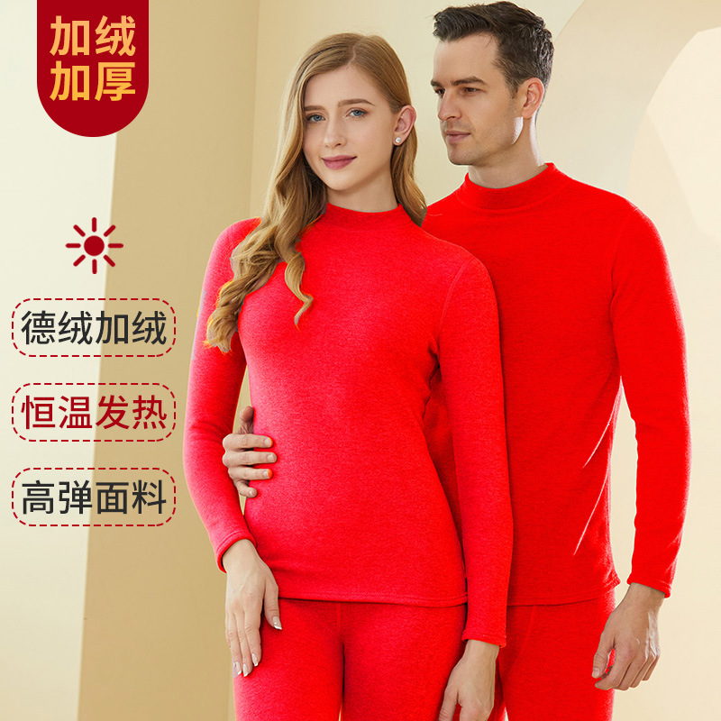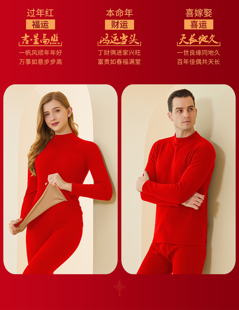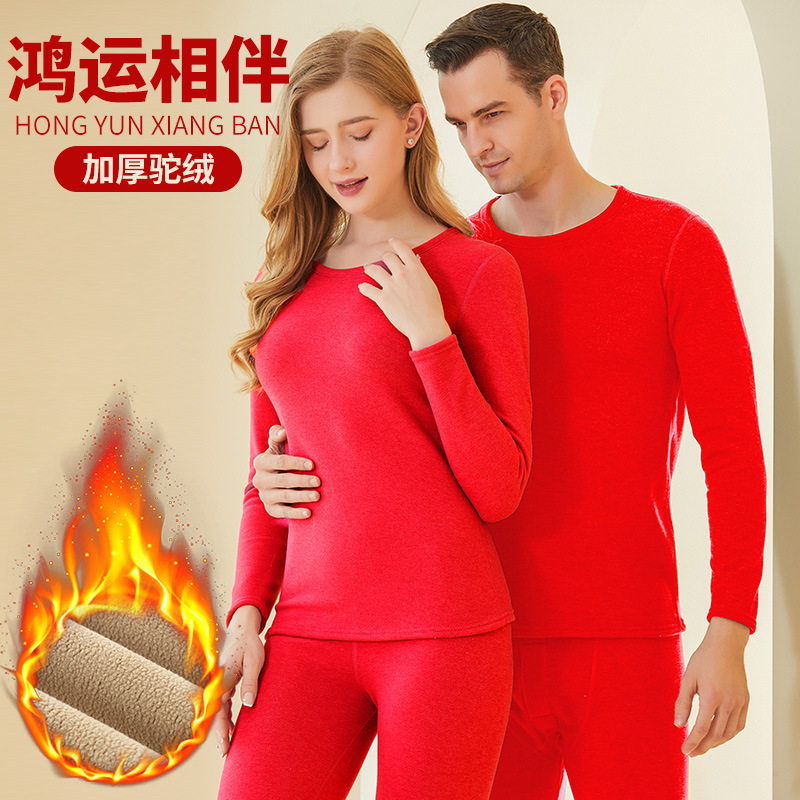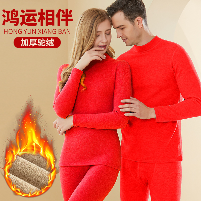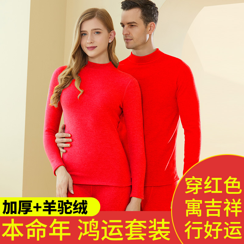 Комплект термобелья из альпаки (красный, китайский стиль), осенний, с высоким воротом, для пар, базовый слой, женский, утолщенный, на год рождения по знаку зодиака