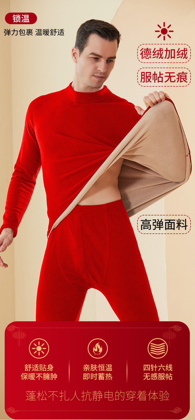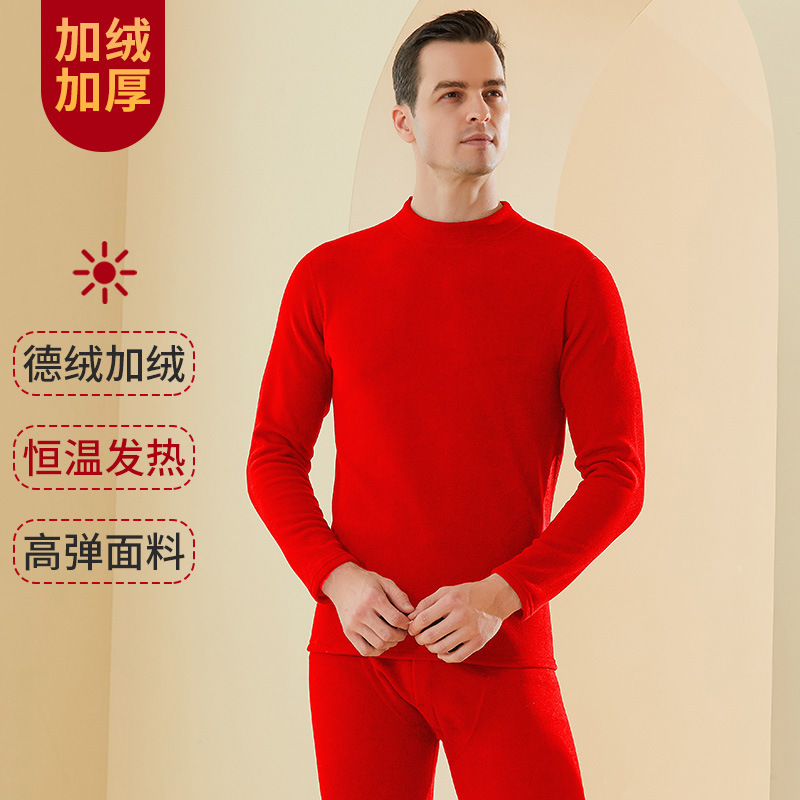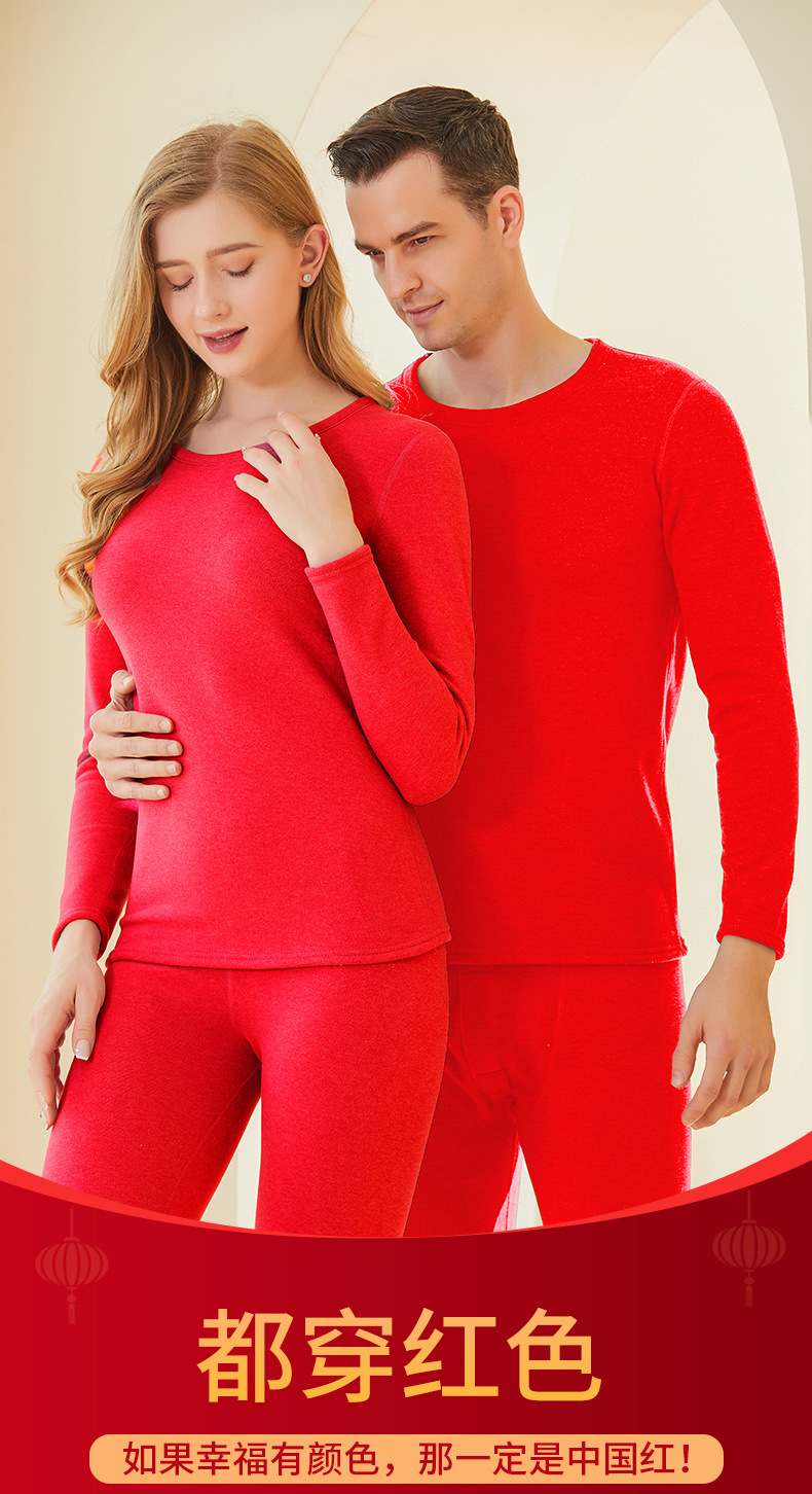 Комплект термобелья из альпаки (красный, китайский стиль), осенний, с высоким воротом, для пар, базовый слой, женский, утолщенный, на год рождения по знаку зодиака