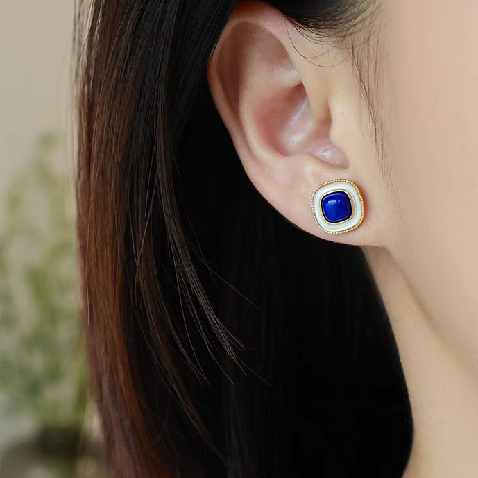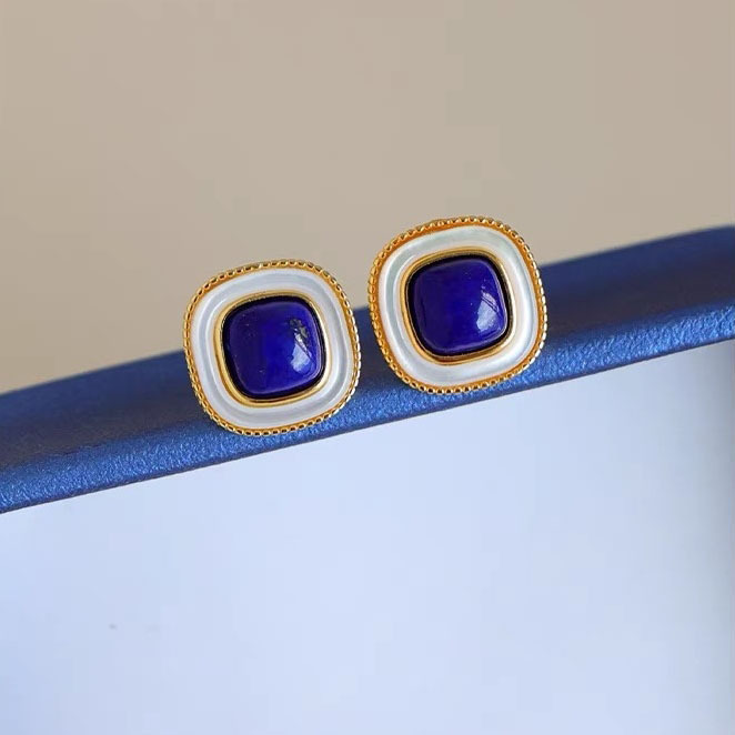 Серьги из натурального лазурит с белым перламутром и квадратным серебром