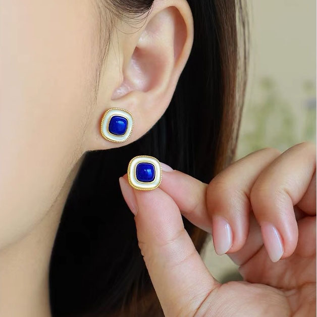 Фабрика оптовая натуральная лазоритовая ушная гвоздь белая фистерия 925 серебряные украшения цветные драгоценные камни стерлингового серебра позолоченные серьги