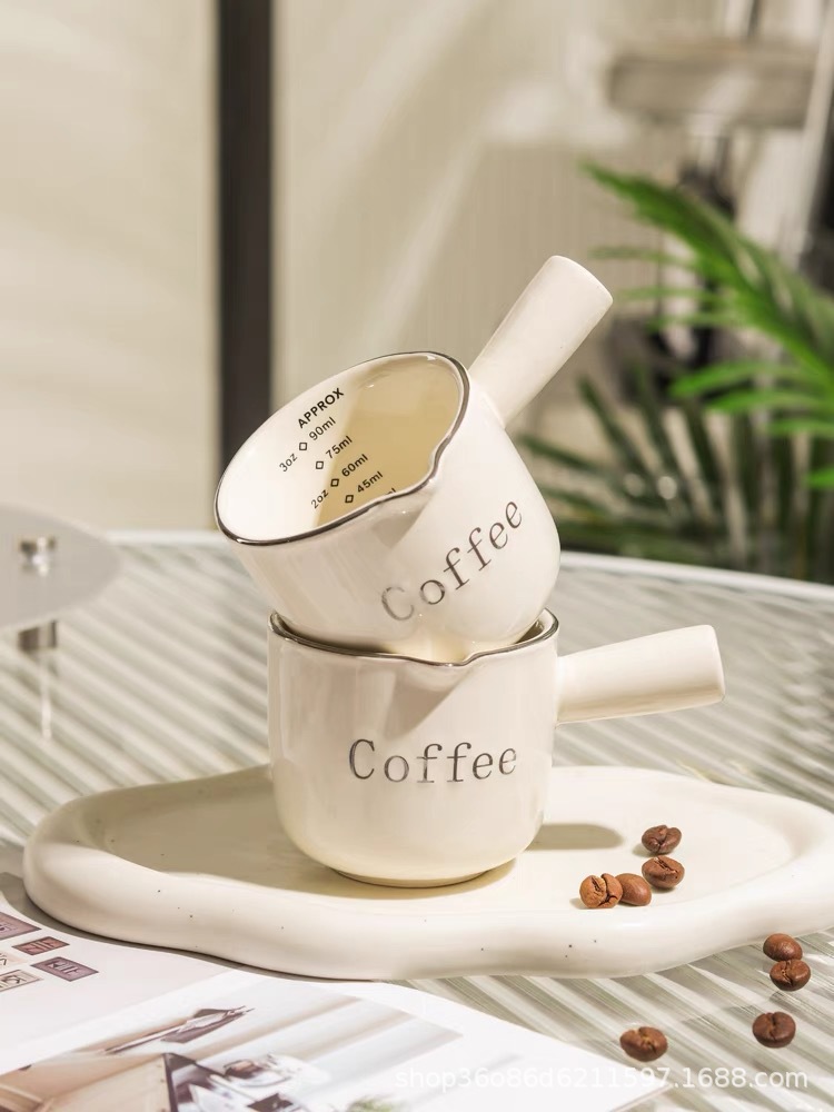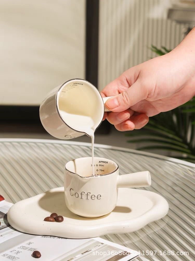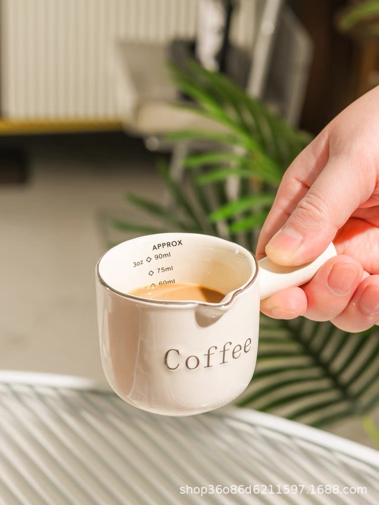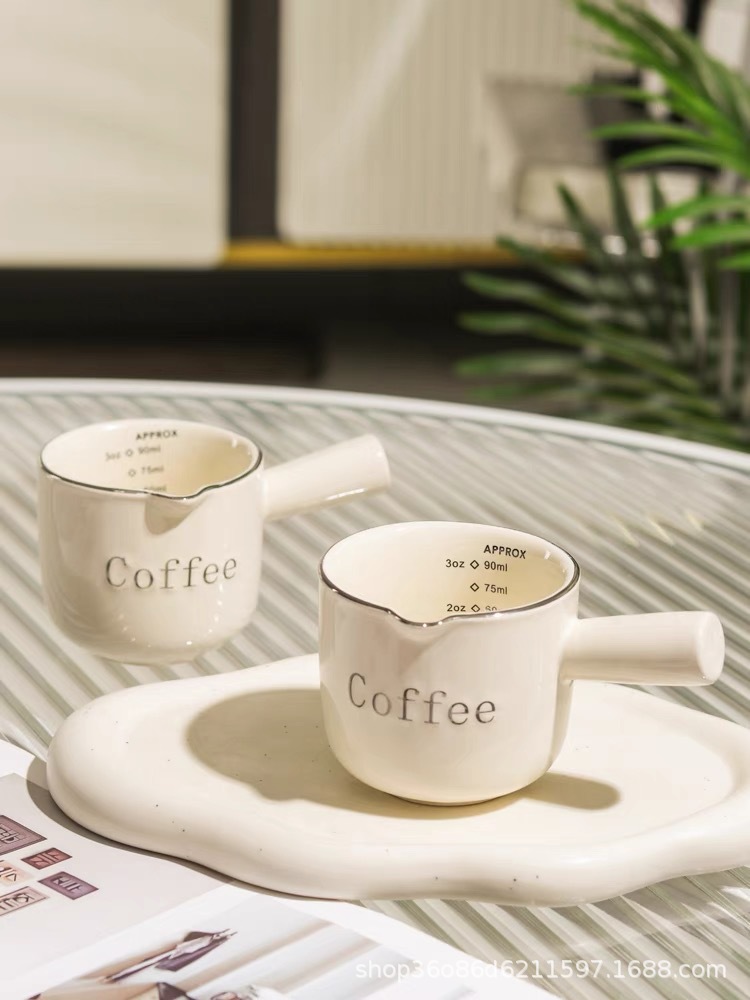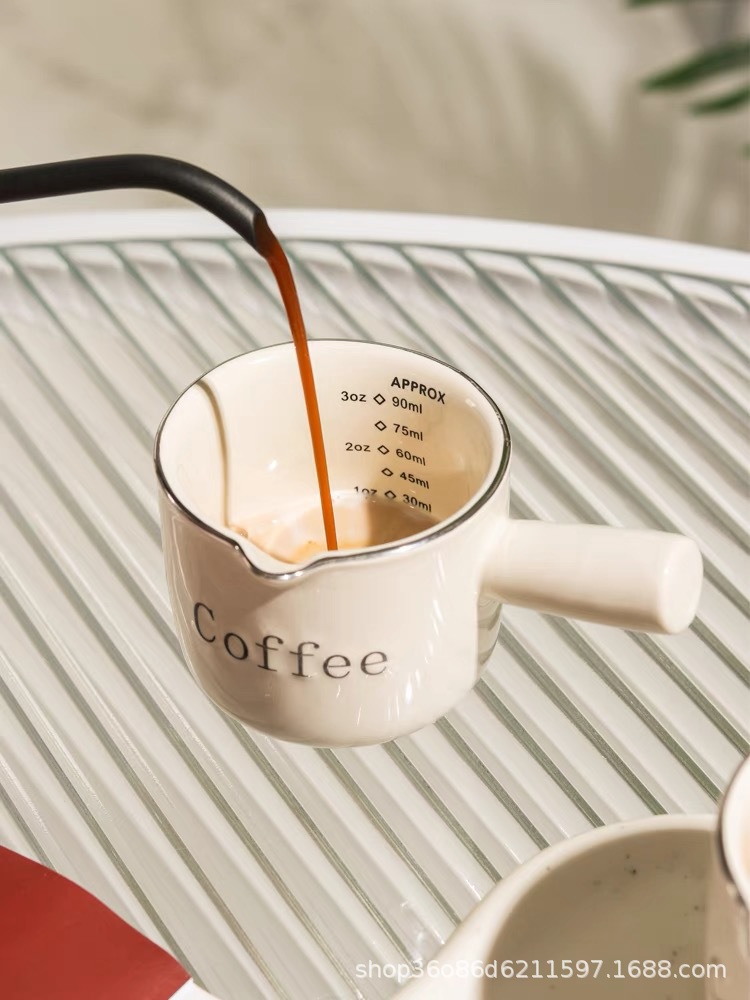 Ins Высокое значение кофе маленькая молочная чашка с шкалой молочная банка эспрессо экстракционная чашка кофе изысканная керамическая мерная чашка для молока