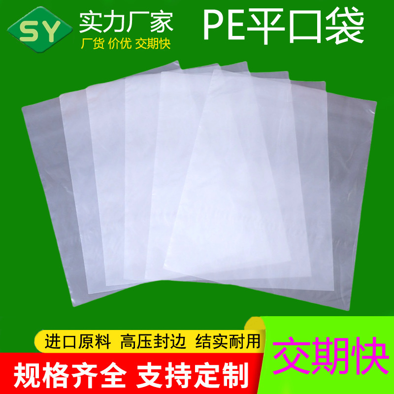 Высокопрочный прозрачный ПЭ плоский пакет, утолщенный пластиковый упаковочный пакет, ПЭ пластиковый пакет на заказ, производитель Гуандун Дунгуань