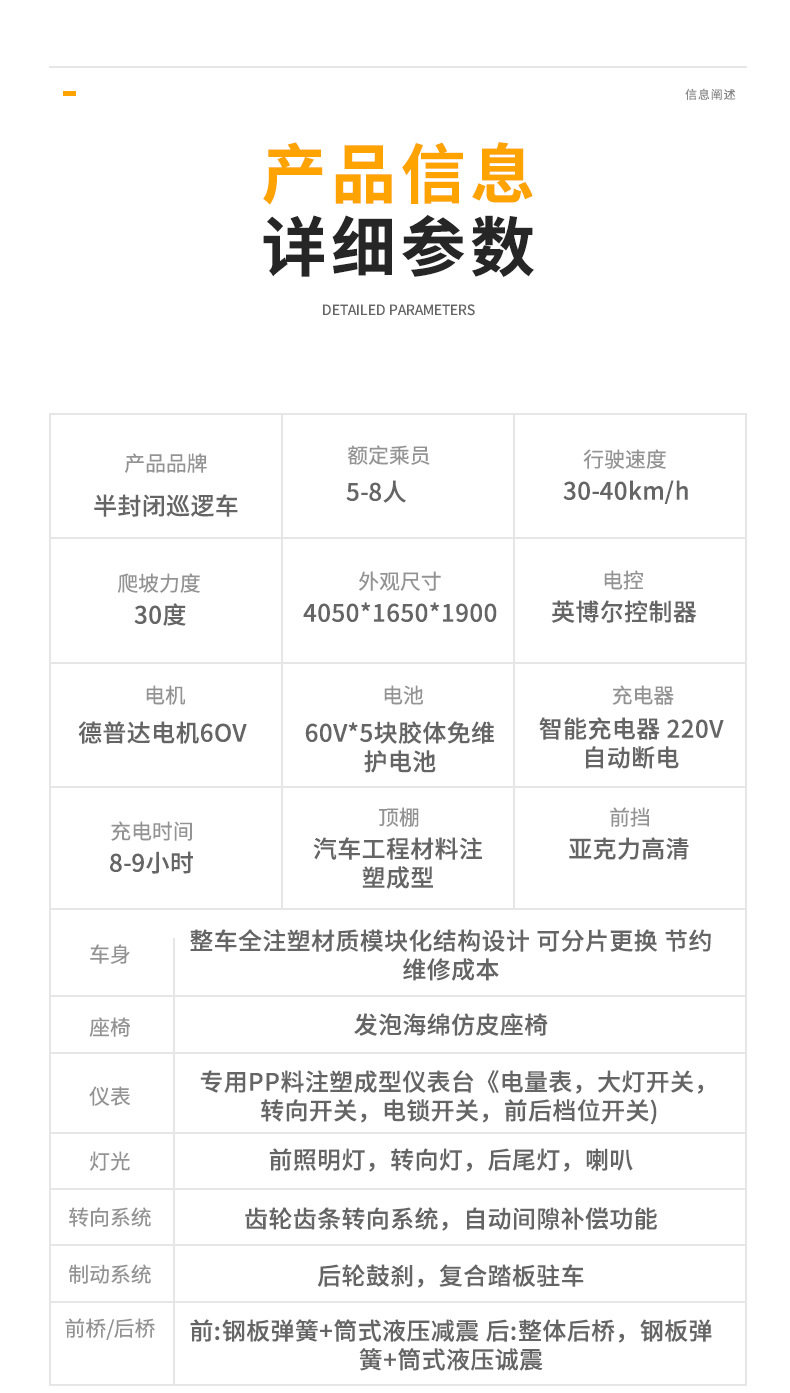 Прямая поставка полузакрытой патрульной машины Живописная местность Школьная экскурсионная машина безопасности городского управления 5-8 электрических патрульных машин