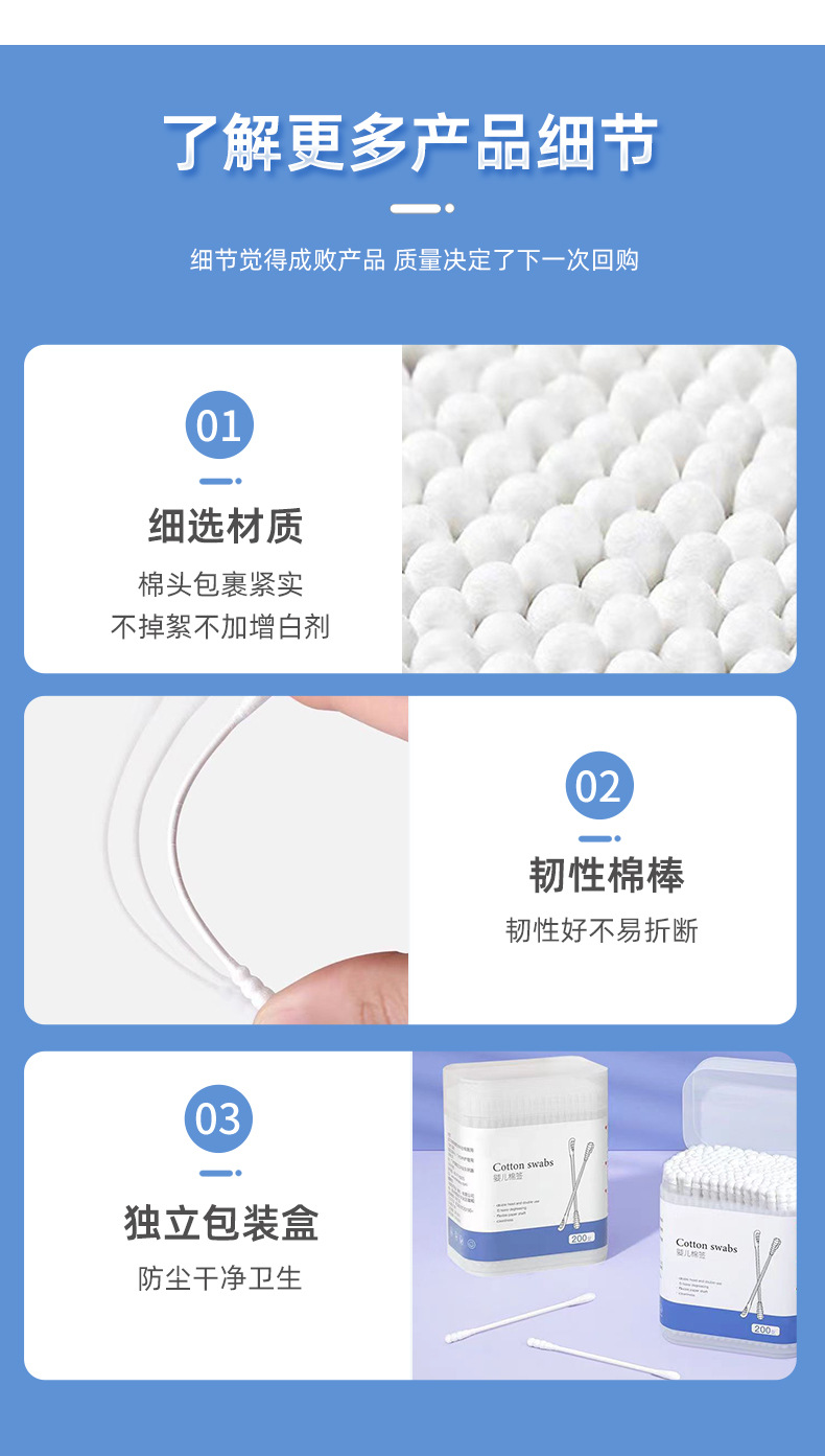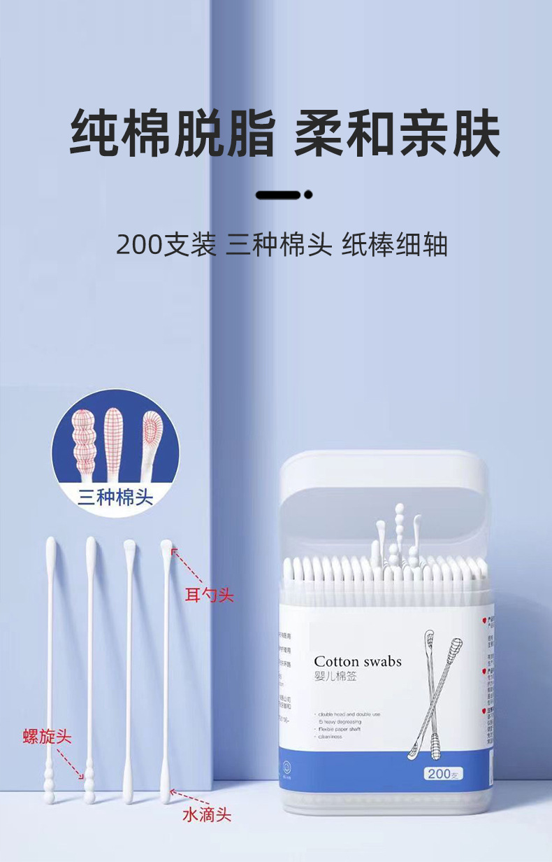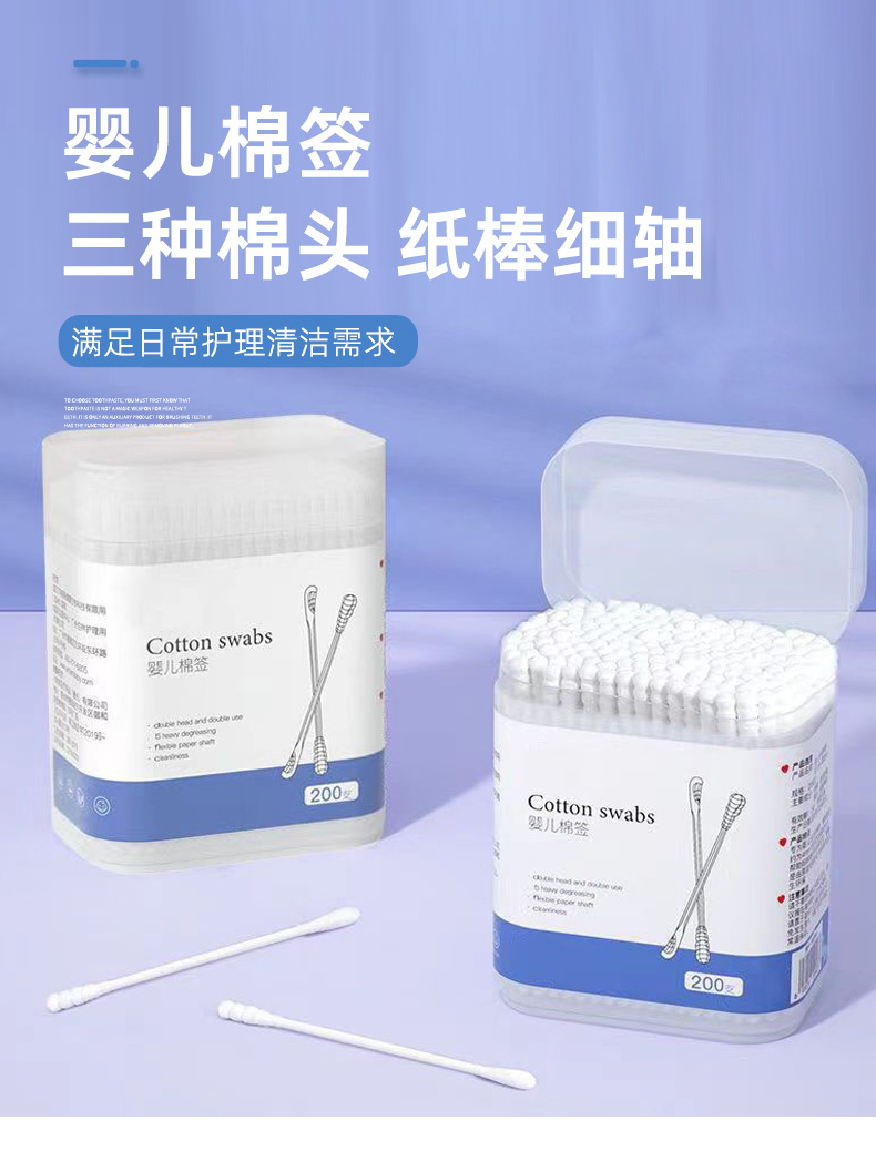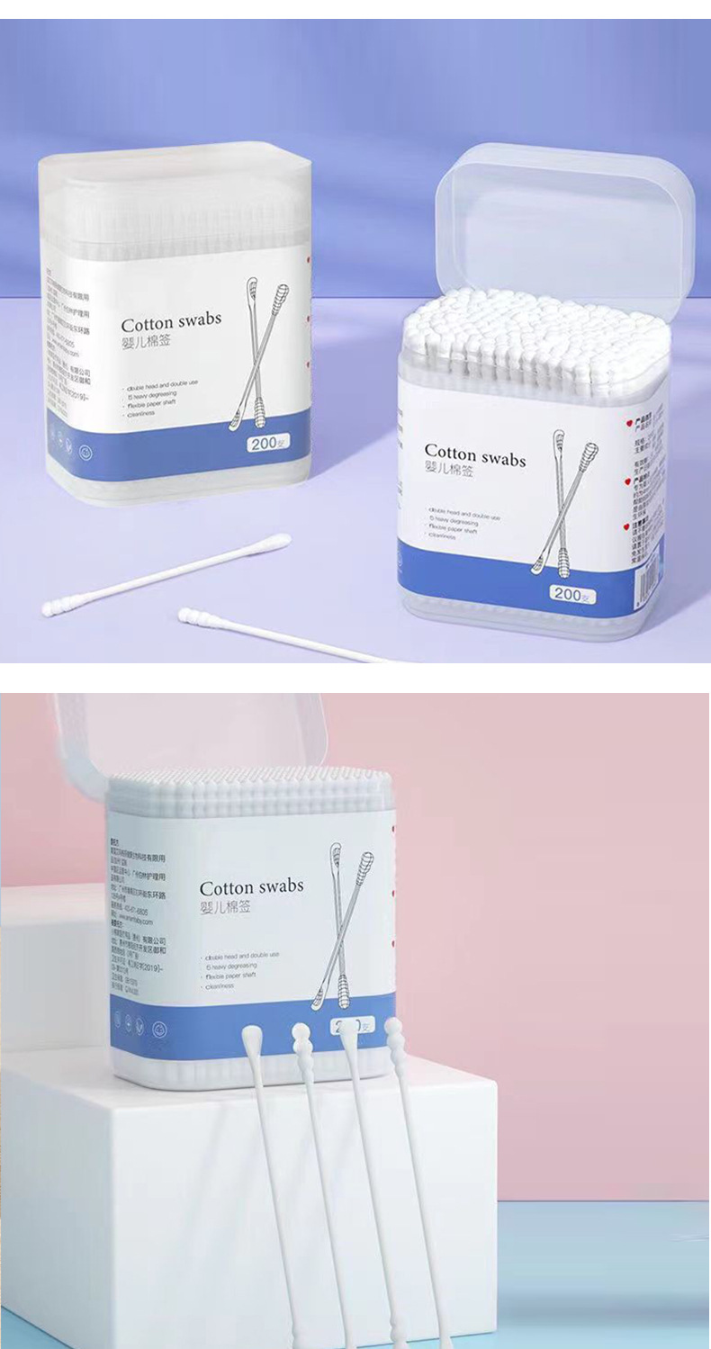 Детские двуголовые уши с одноразовым макияжем и чистящими ватными тампонам 200 коробочных ватных тампонов для младенцев оптом