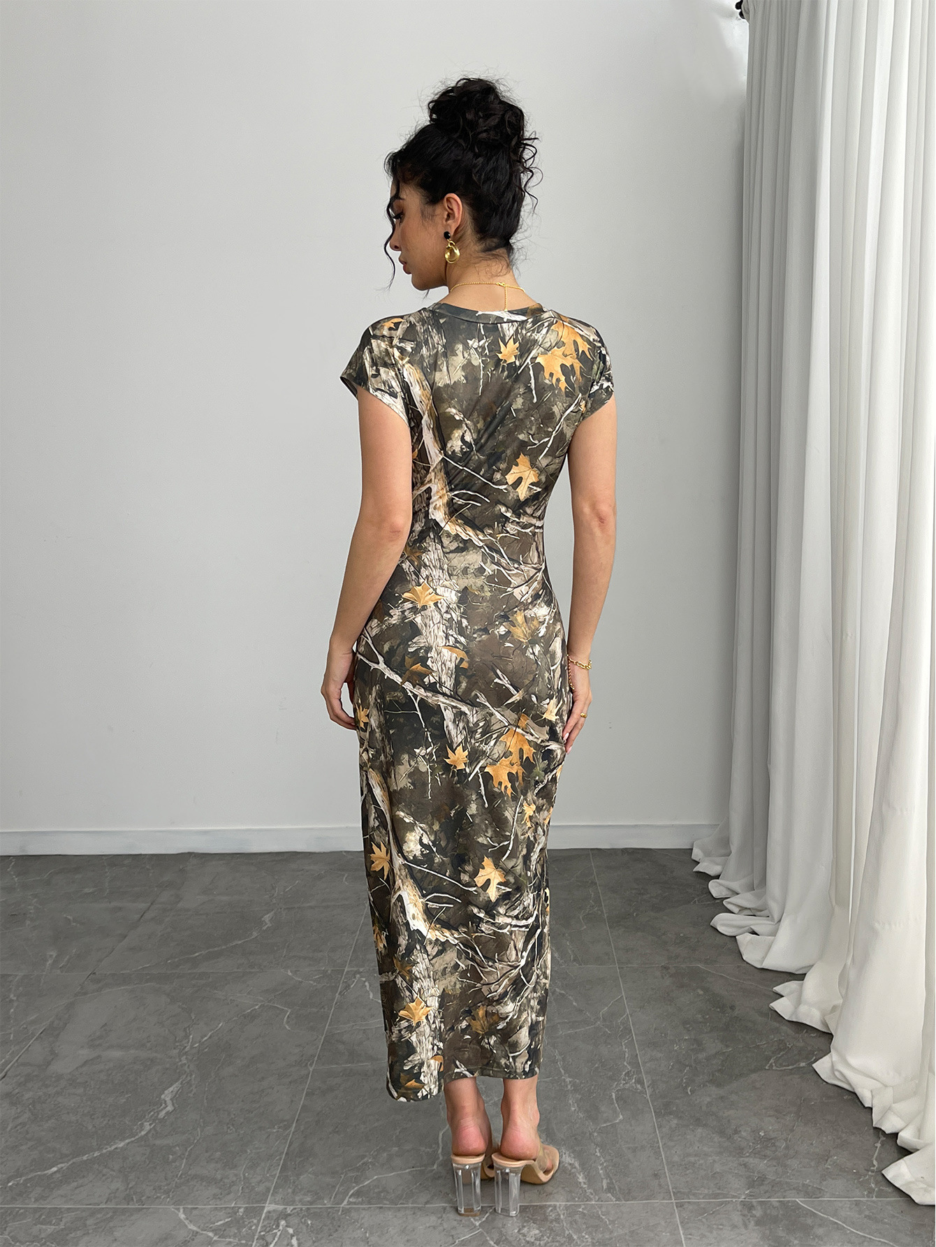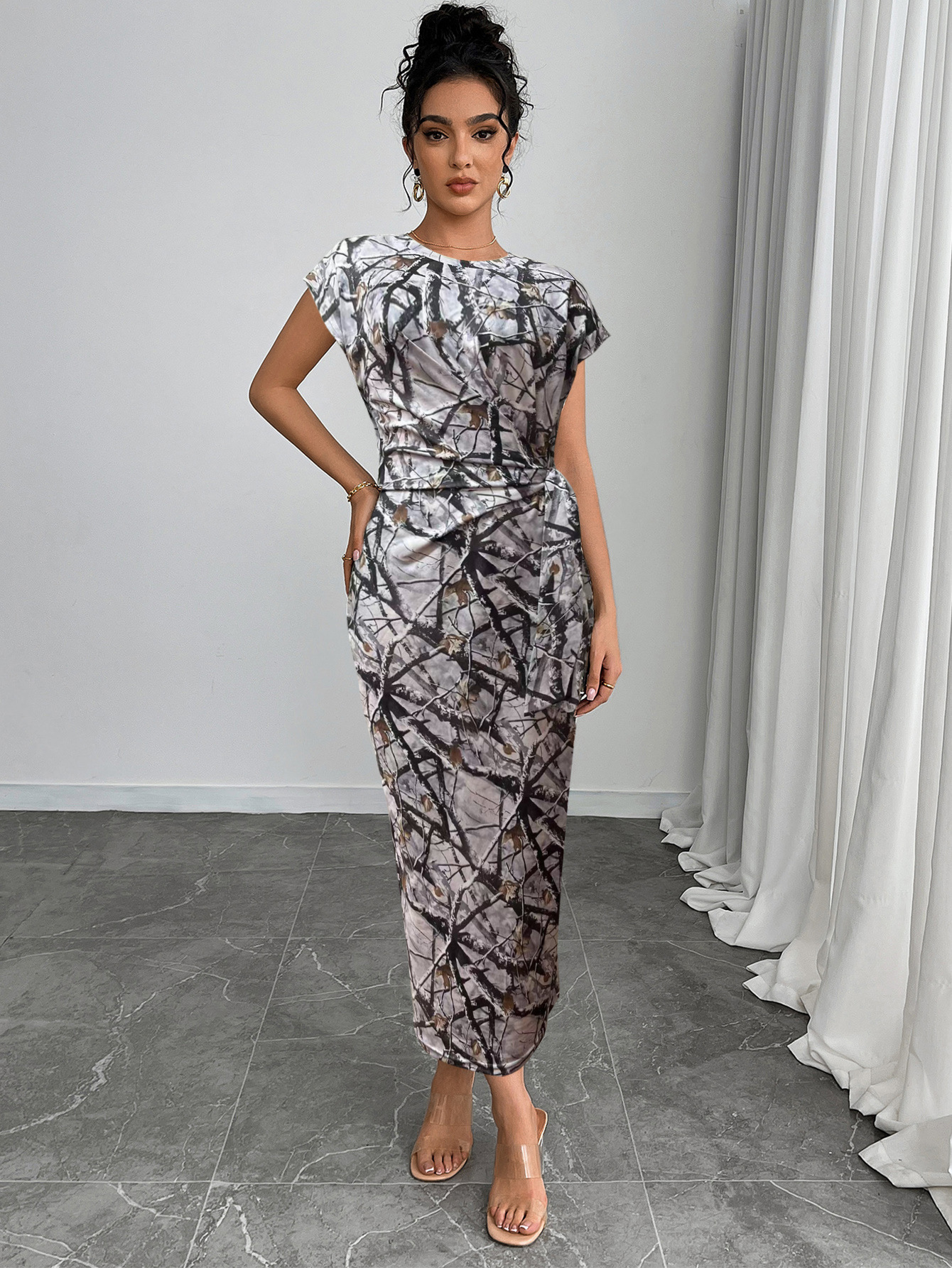 Трансграничный темперамент элегантная талия ремешок в полоску с круглым вырезом с короткими рукавами длинное платье летняя женская юбка