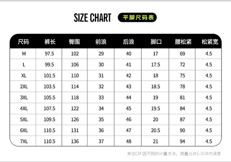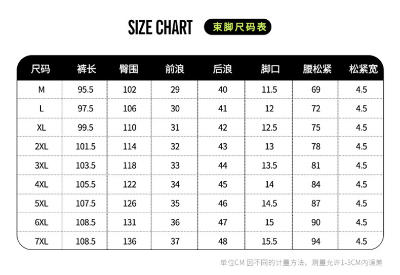 M/90-105; L/105-120; XL/120-135; XXL/135-150; XXXL/150-165; 4XL/165-180; 5XL/180-195; 6XL/195-210; 7XL/210-225
