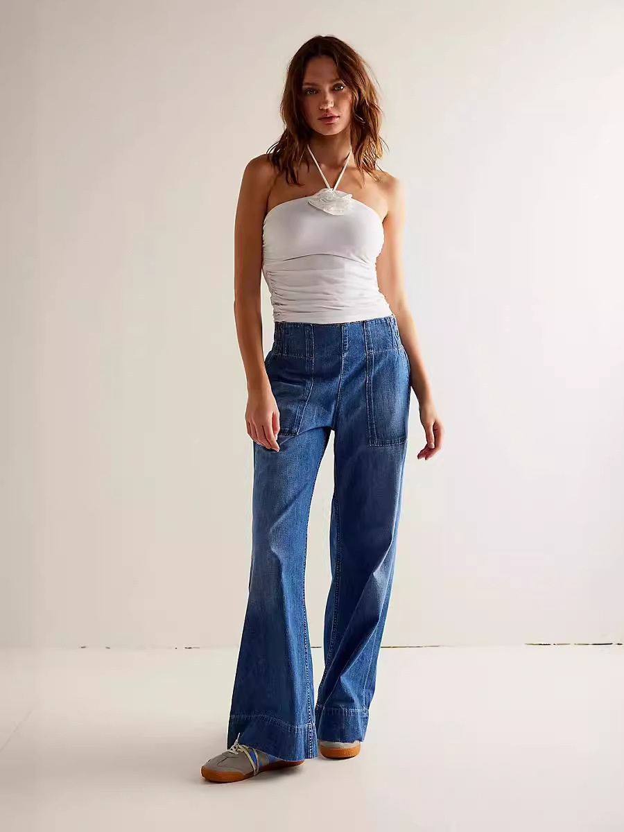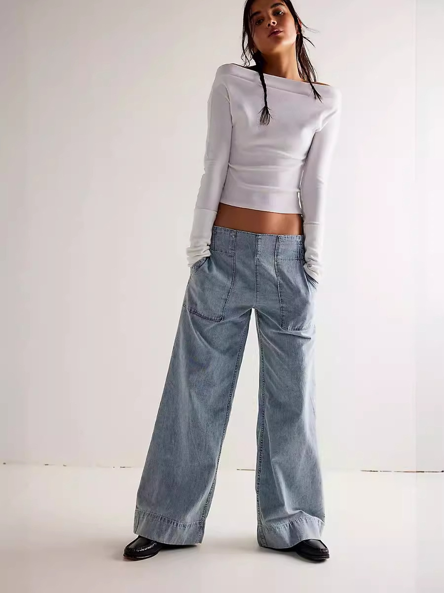 Европейская и американская женская мода индивидуальность с низкой талией без боевого джинсовых брюк