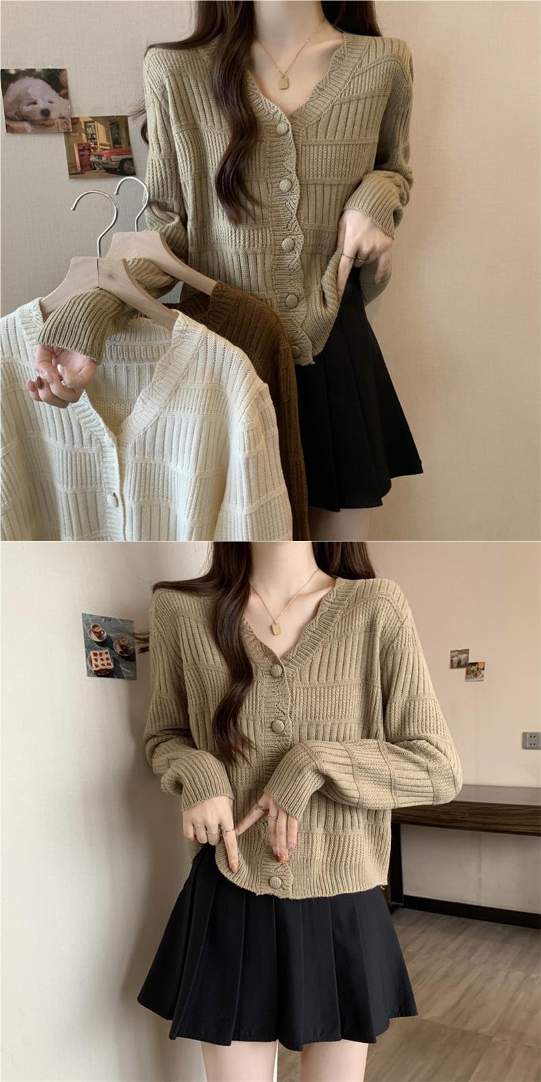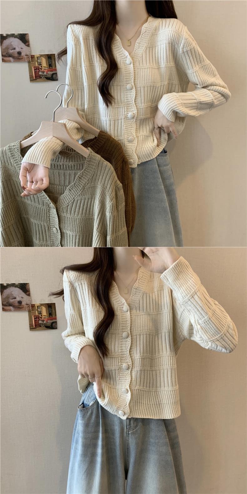 Утренний весенний свитер женский осенний и зимний небольшой ароматный пиджак сплошной цвет тонкий V-образный вырез короткий трикотажный кардиган