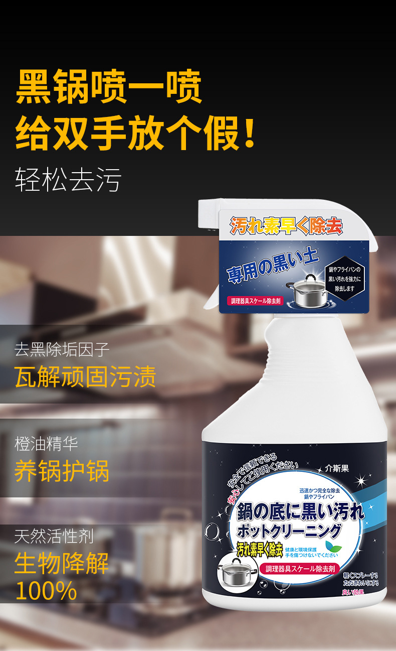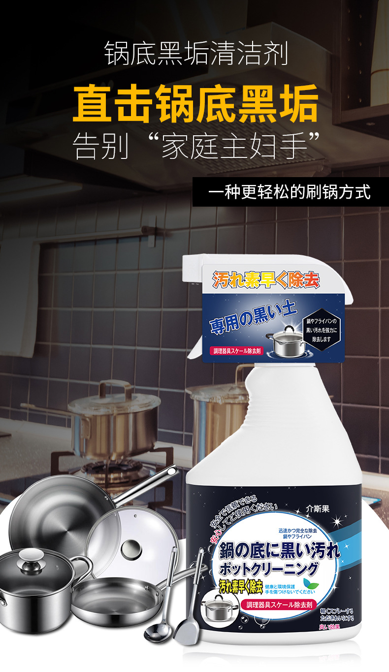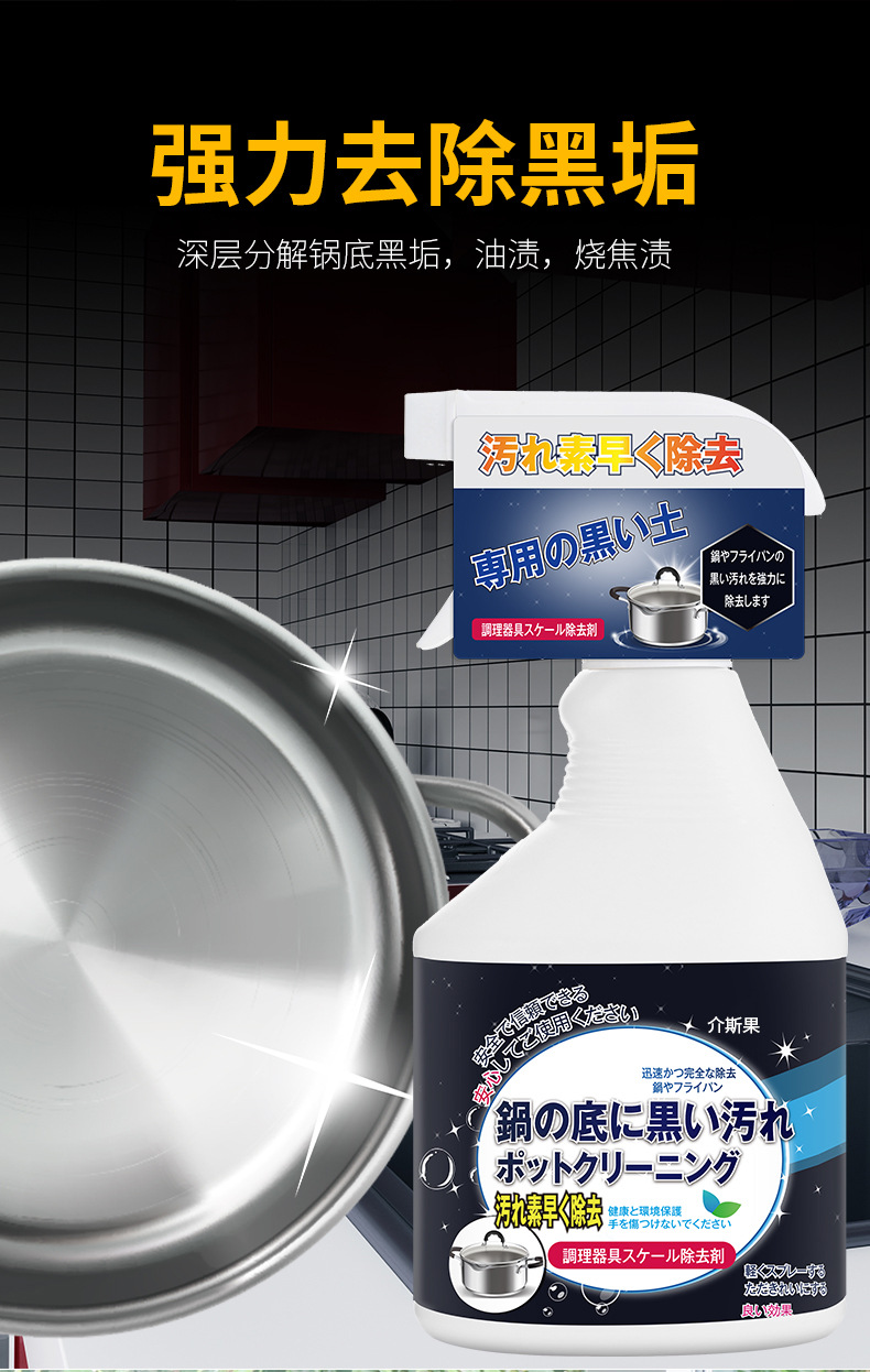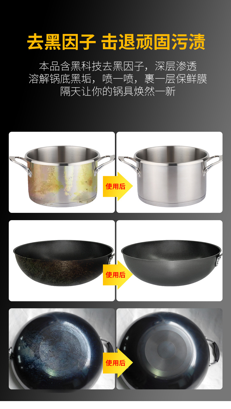 Чистящее средство для дна кастрюли, черное, 500 мл, большая бутылка с животом