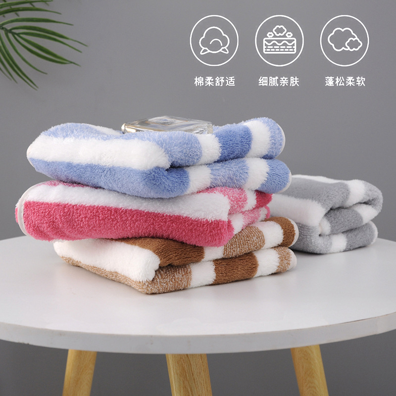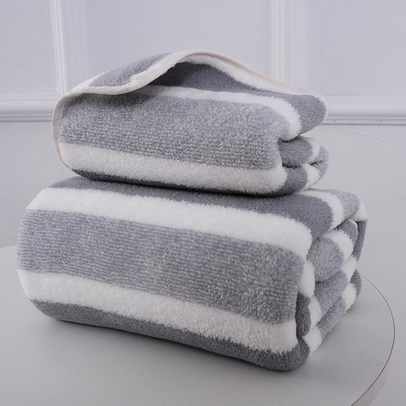 Трансграничная доставка, коралловое бархатное полотенце с широкими полосками, бытовое утолщенное двустороннее водопоглощающее полотенце с широкими полосками для взрослых, коралловое бархатное полотенце