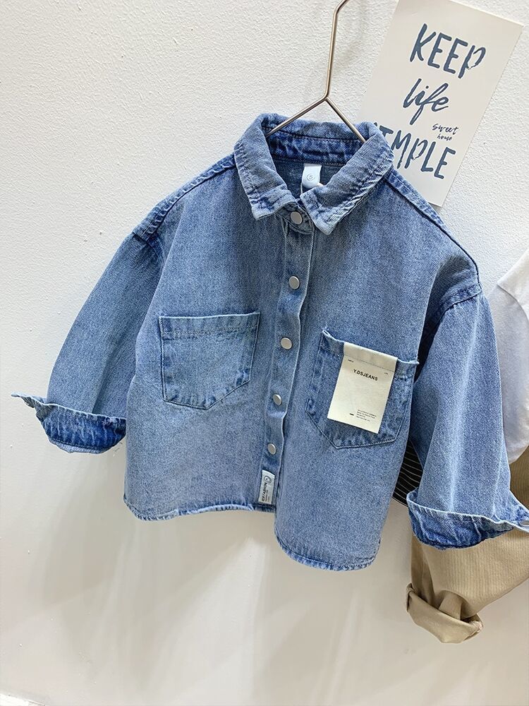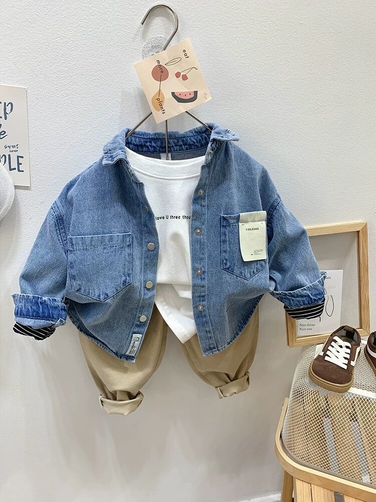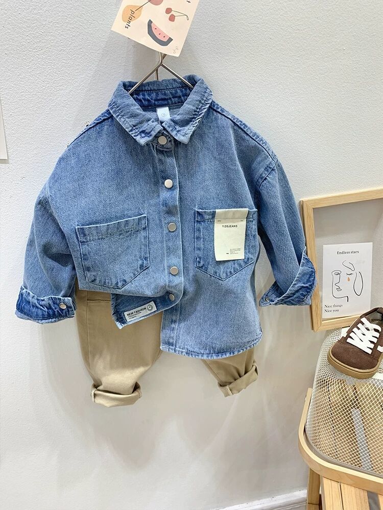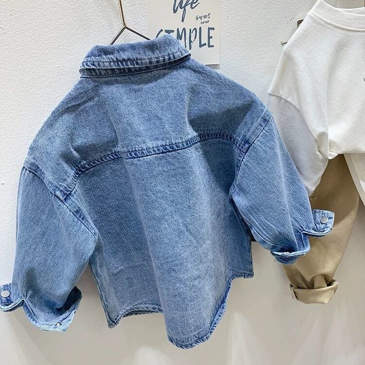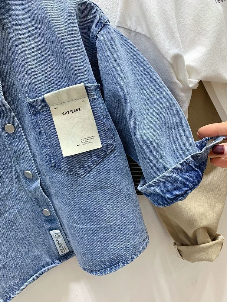 Рубашка для мальчиков Весенняя и осенняя джинсовая рубашка для детей