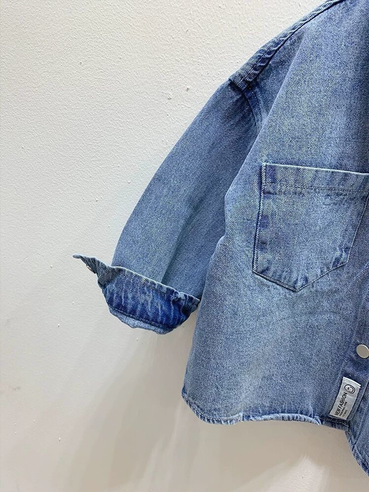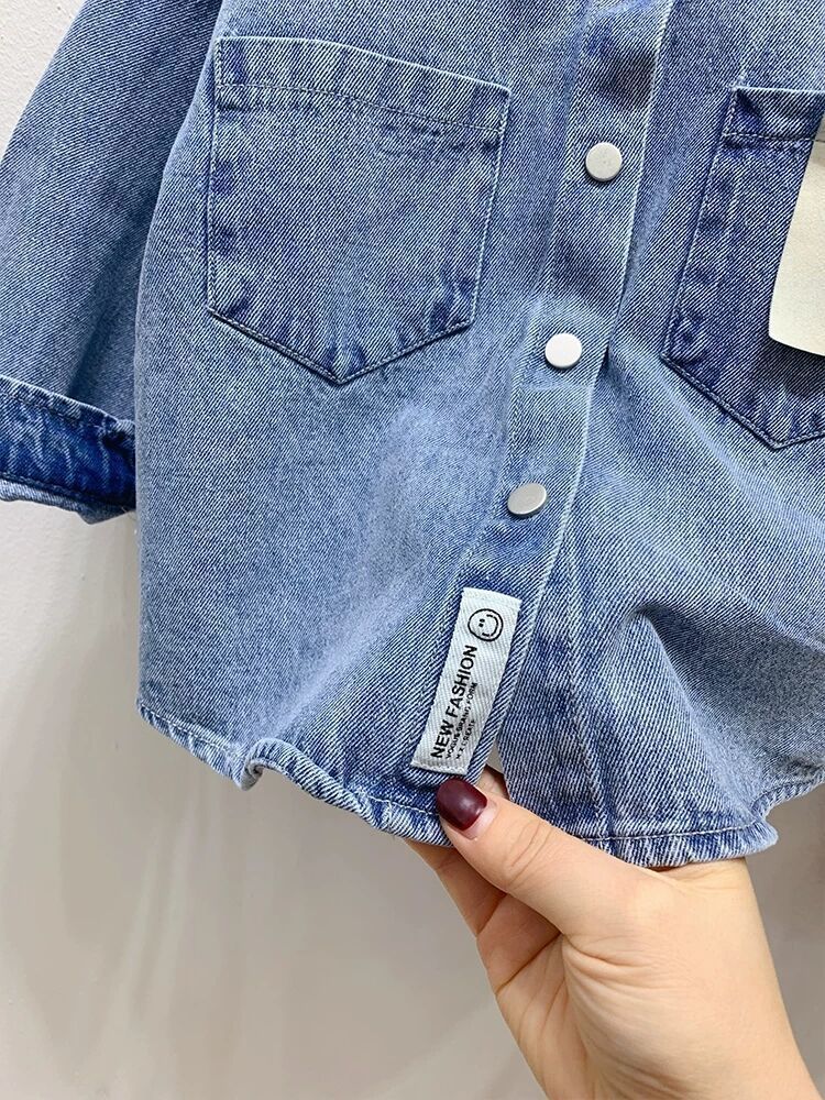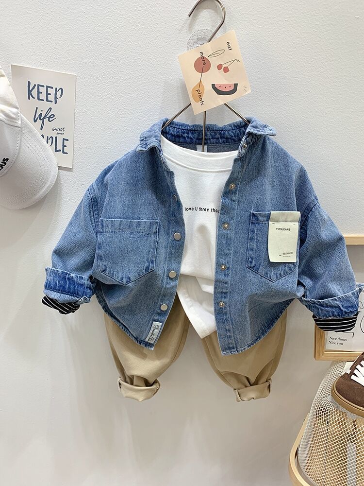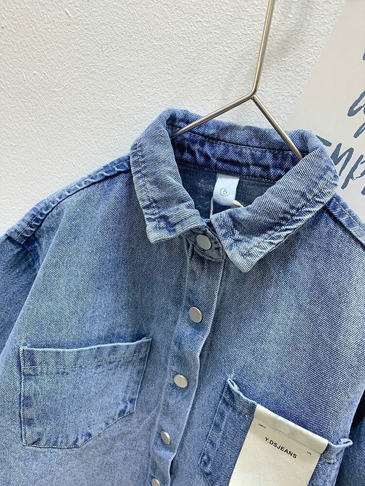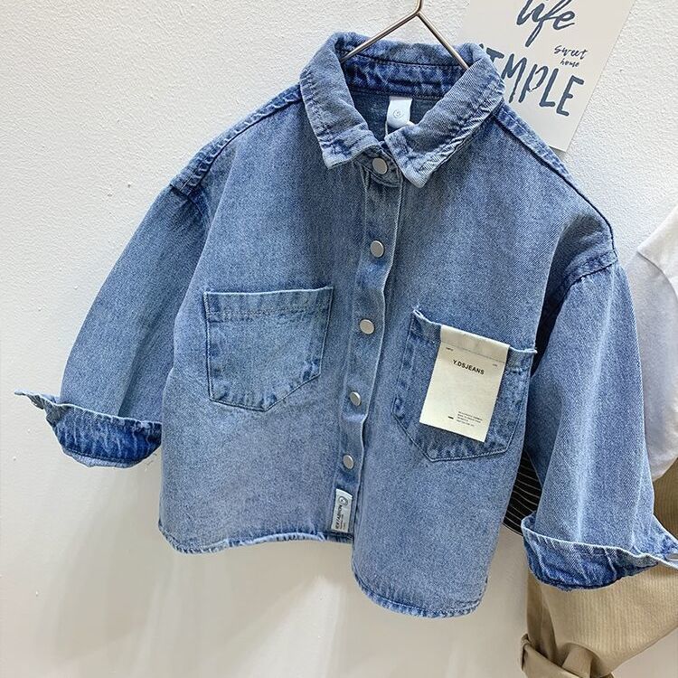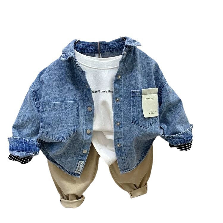 Рубашка для мальчиков Весенняя и осенняя джинсовая рубашка для детей