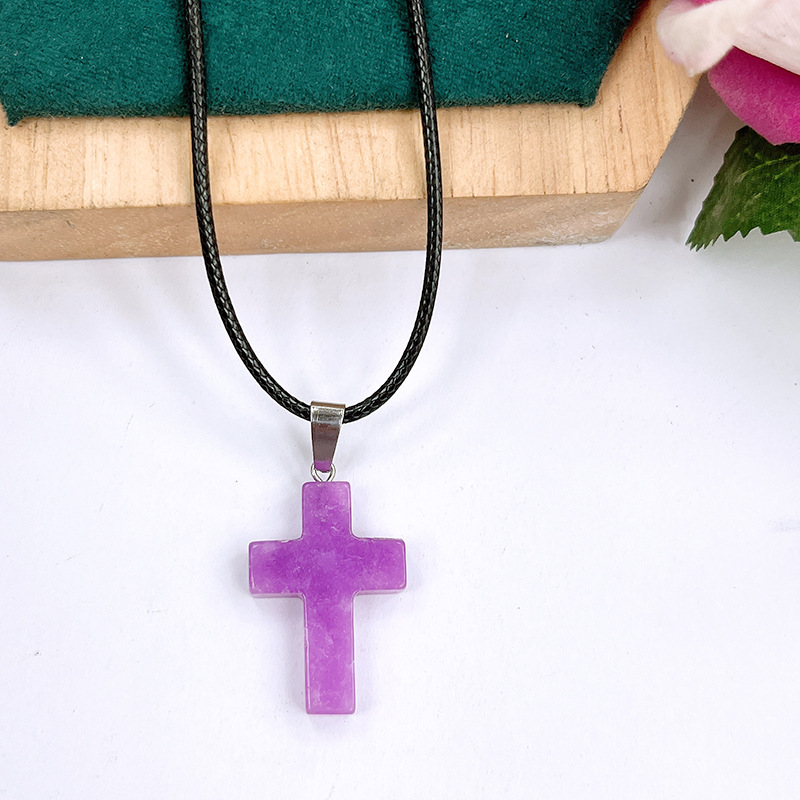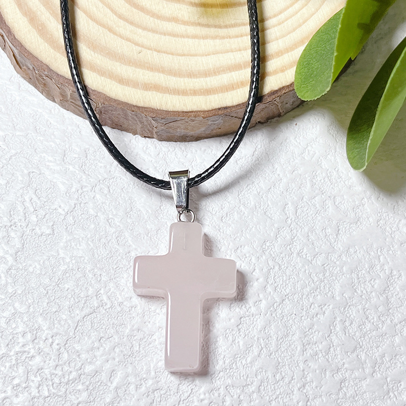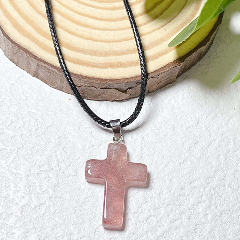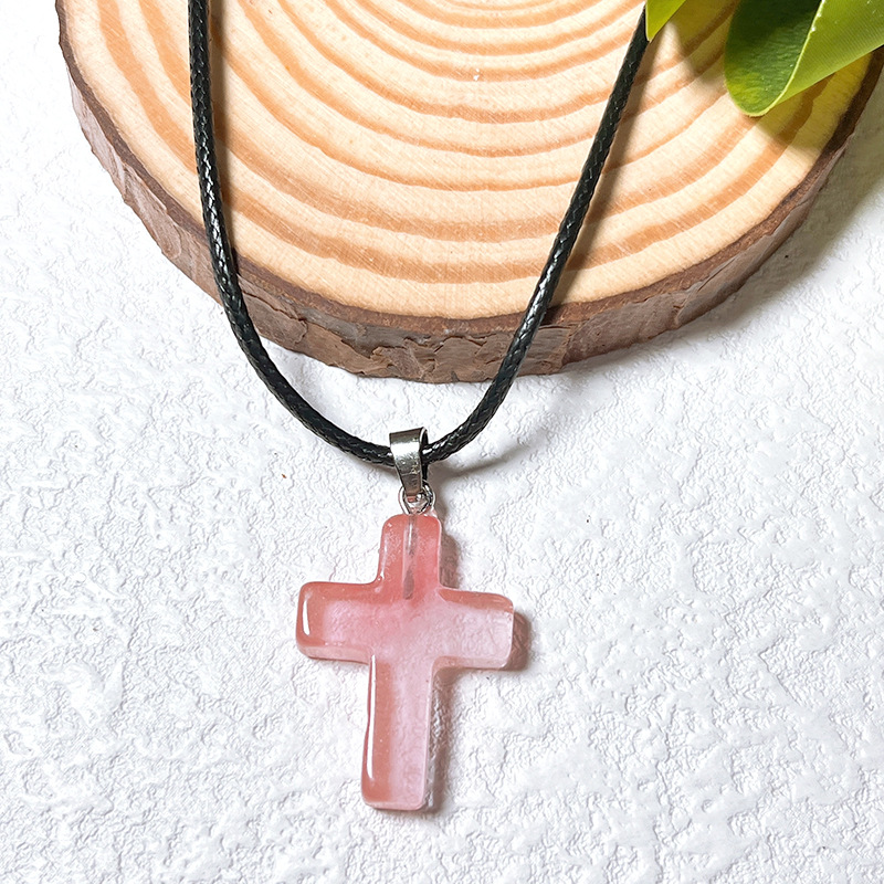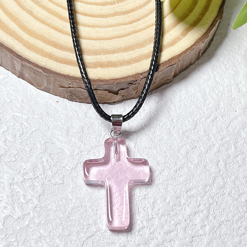 Трансграничный натуральный хрустальный крест подвеска европейская и американская мода внешняя торговля diy ювелирные аксессуары кожаная веревка цепочка ключицы оптом