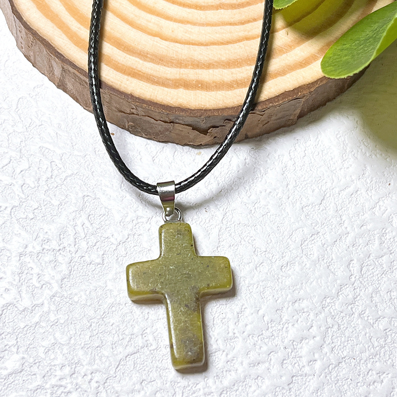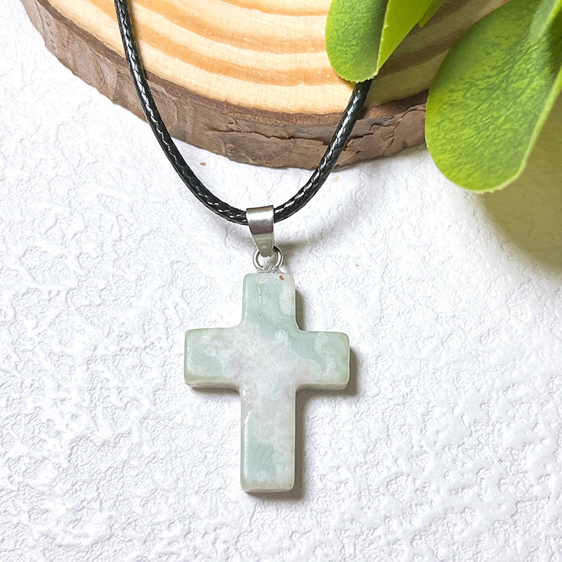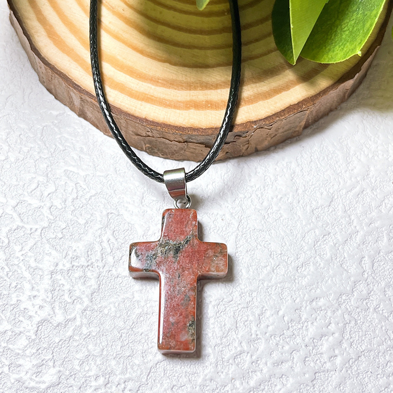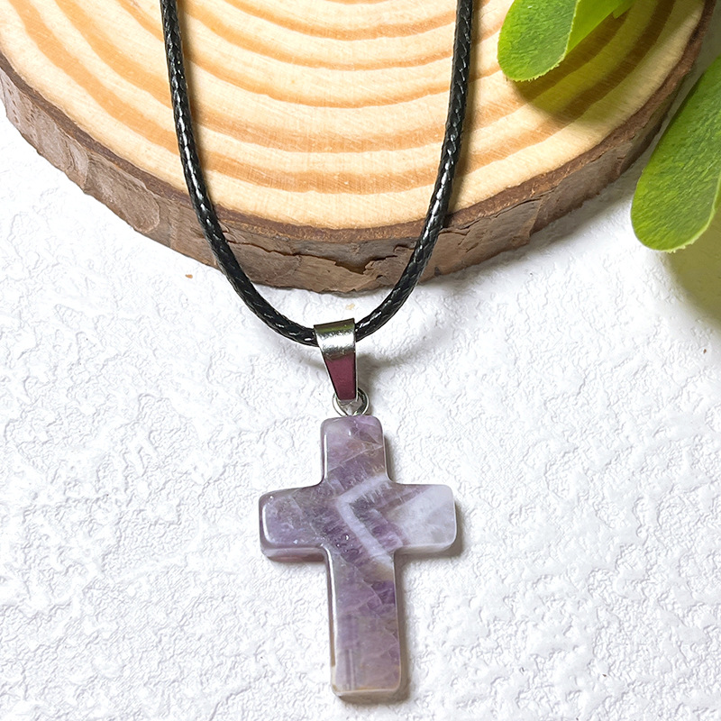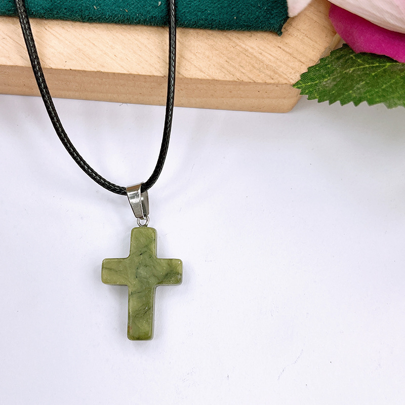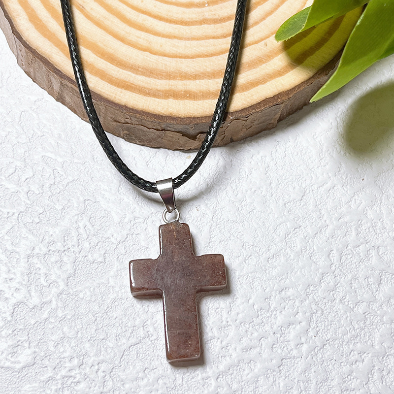 Трансграничный натуральный хрустальный крест подвеска европейская и американская мода внешняя торговля diy ювелирные аксессуары кожаная веревка цепочка ключицы оптом