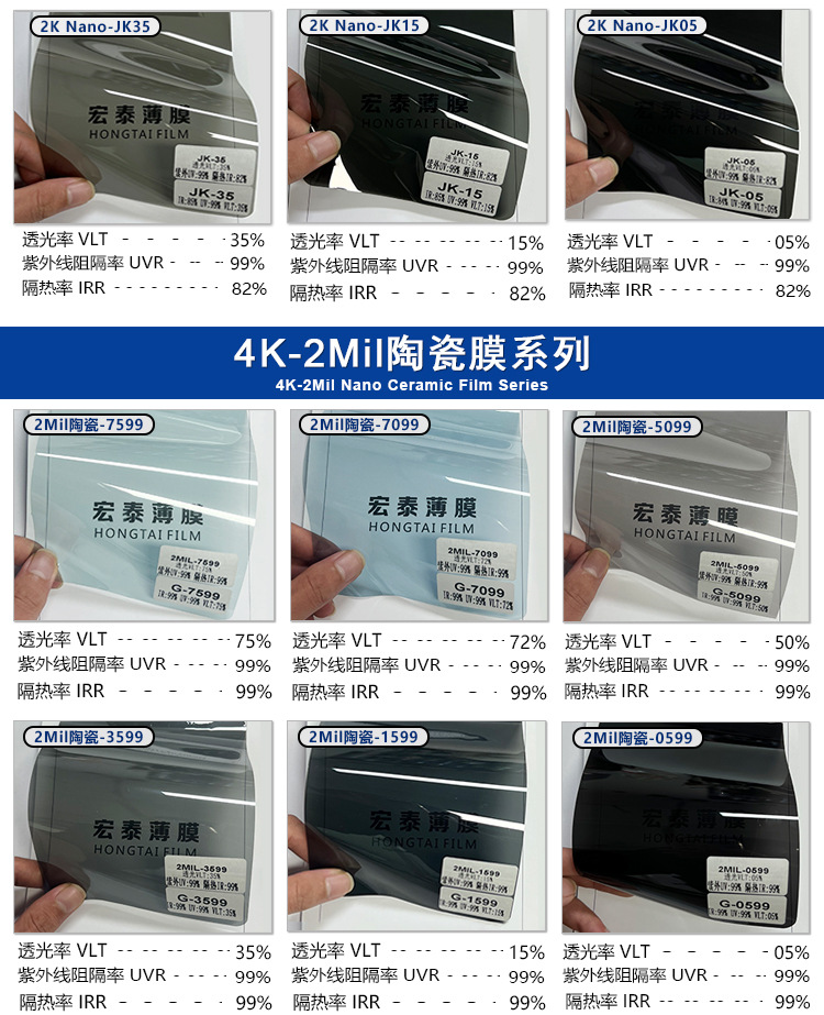 1PLY оригинальный цвет оконной пленки; 2PLY углеродная пленка основных цветов; 2K нано керамическая пленка теплоизоляция 80%; 4K5G-2Mil нано 99%.; 4K5G-3Mil нано 99%.; 4K5G-4Mil нано 99%.