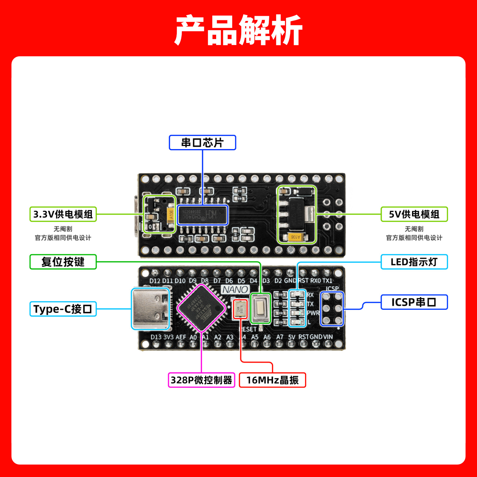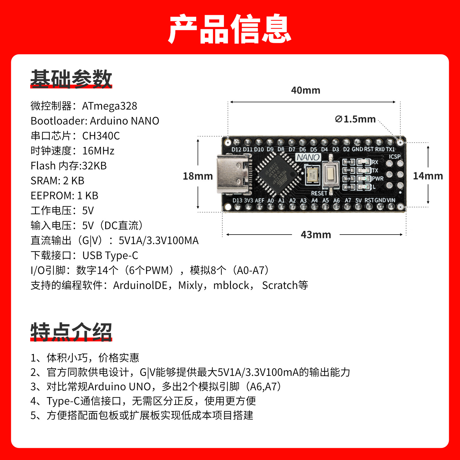 Совместимость с Arduino NANO Плата разработки усиленная версия ATmega328P Начальная панель управления программированием