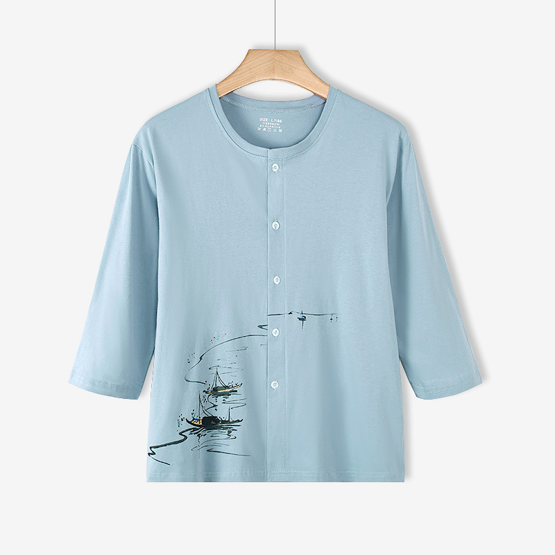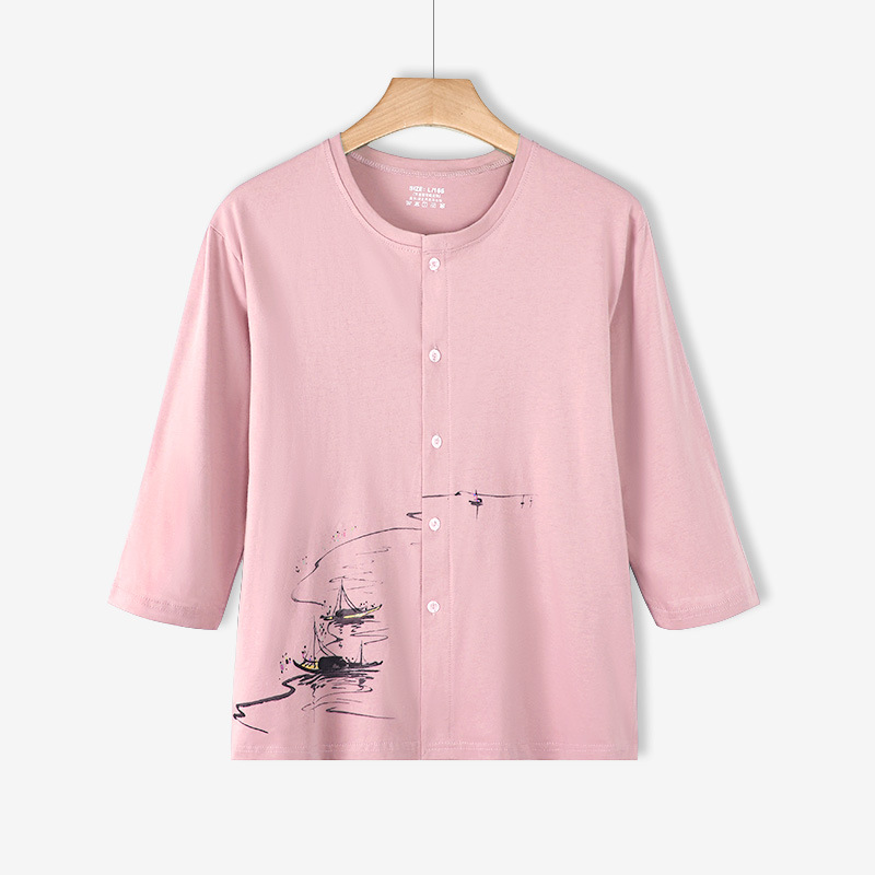 Среднего и пожилого возраста с семиментельными рукавами летние хлопковые кардиганы с круглым вырезом