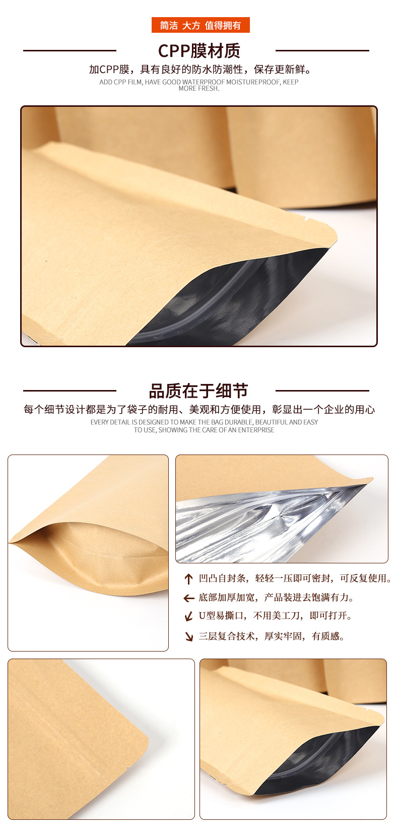 Фабрика спотовая желтая крафт-бумага внутри алюминиевая самозапечатанная сумка