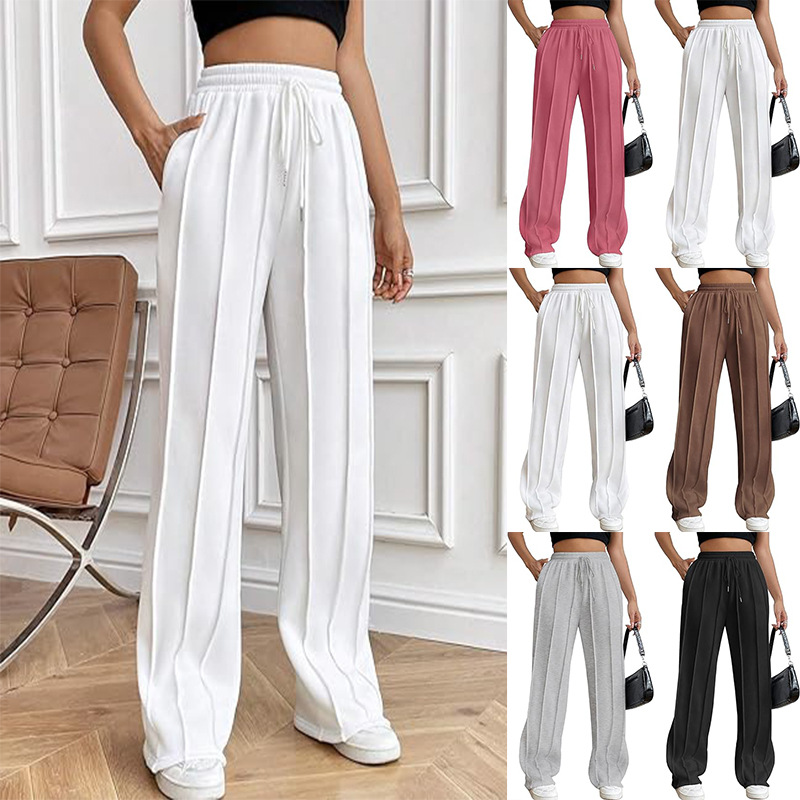 Универсальные женские брюки с высокой талией, свободные, комфортные, широкие, прямые, длинные, для повседневной носки и спорта, в европейском и американском стиле, осенняя коллекция, для трансграничной торговли на Amazon.
