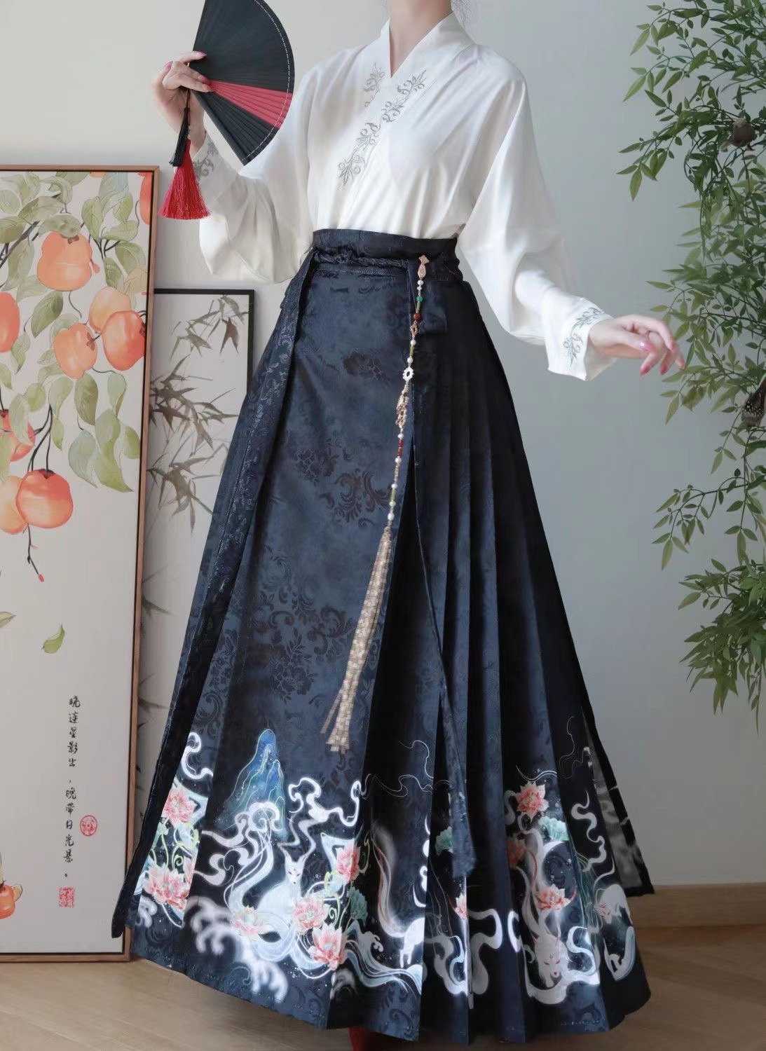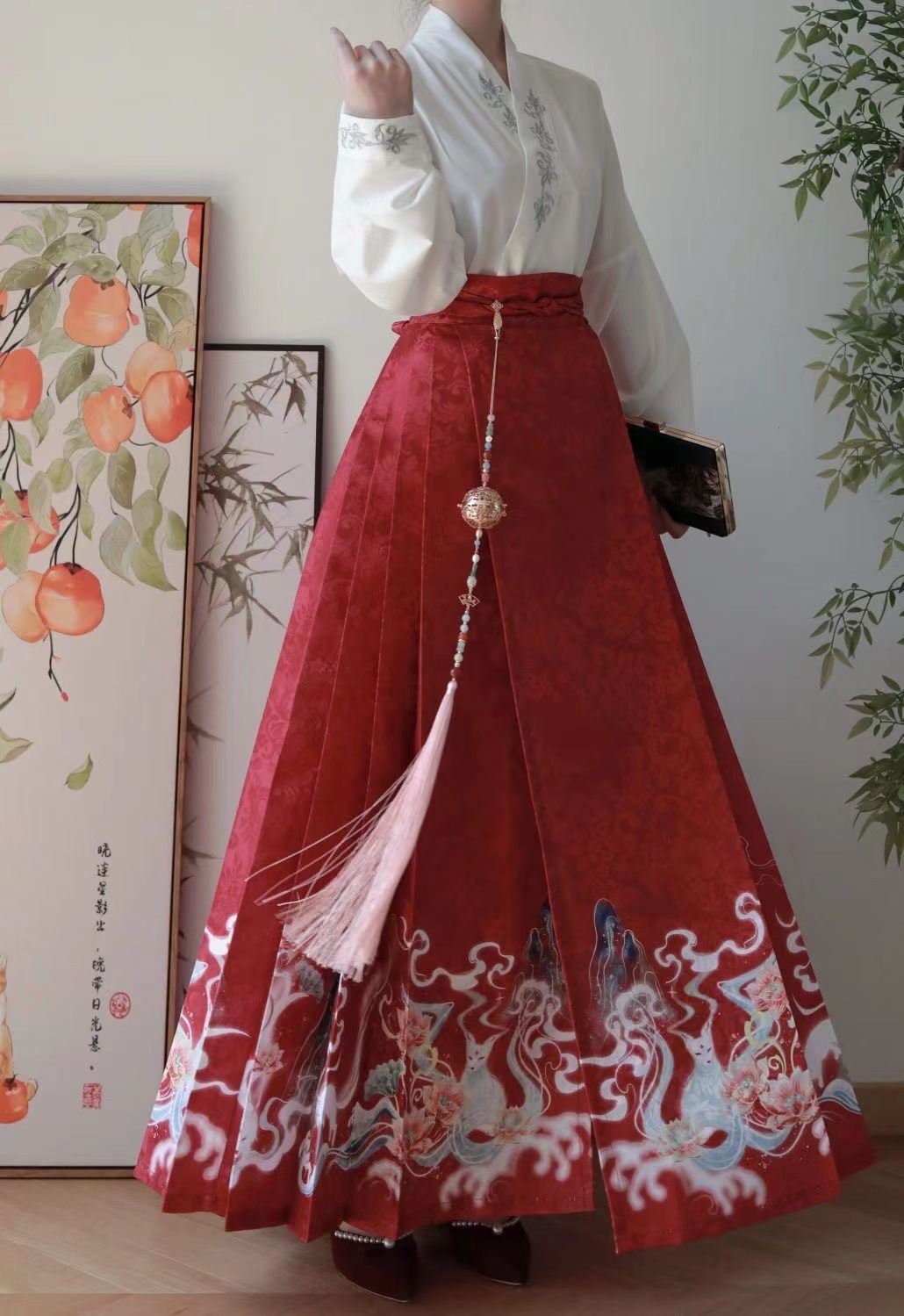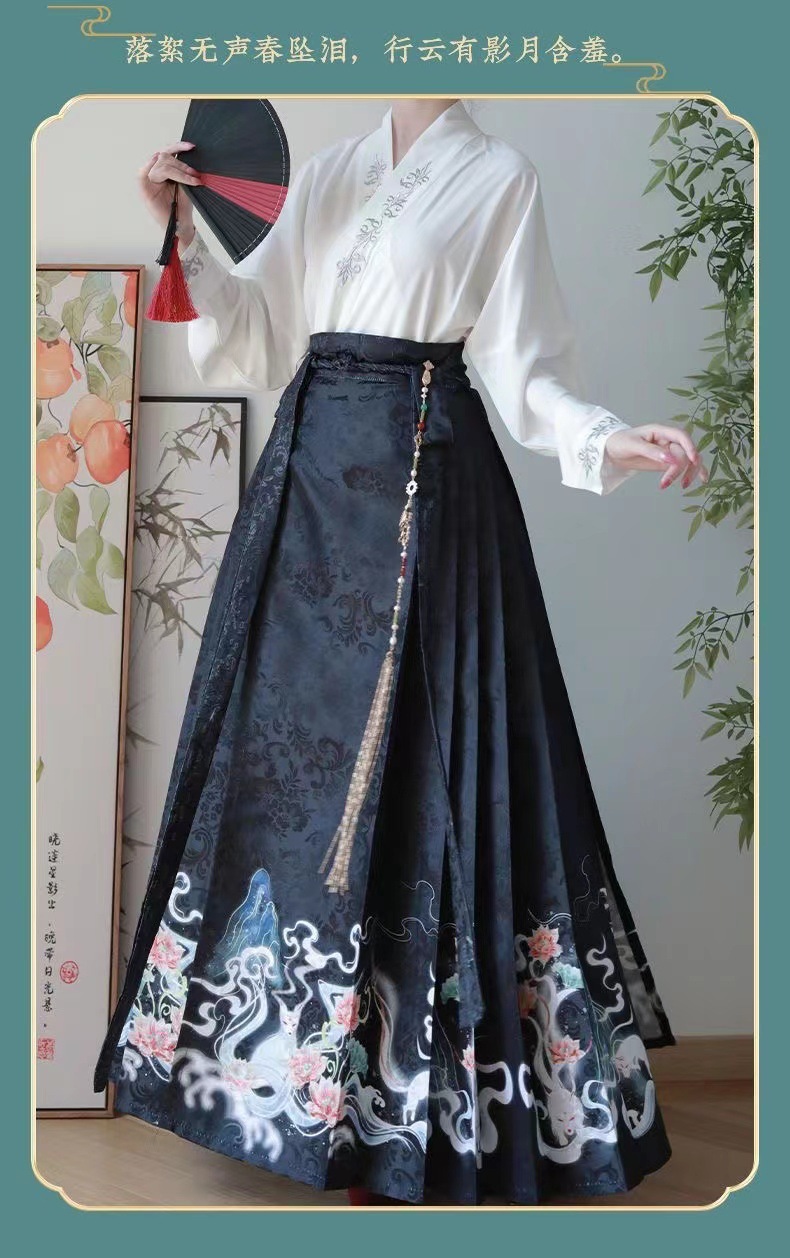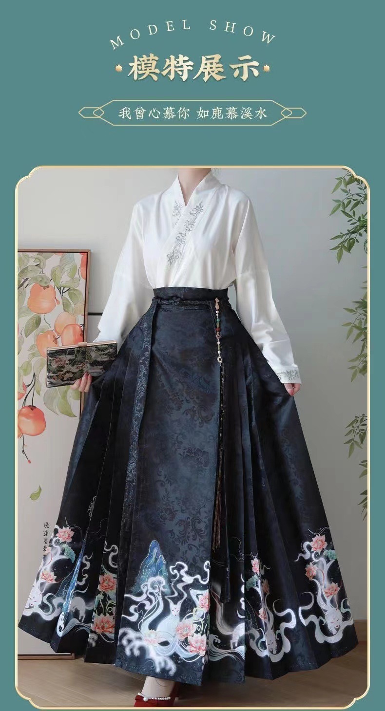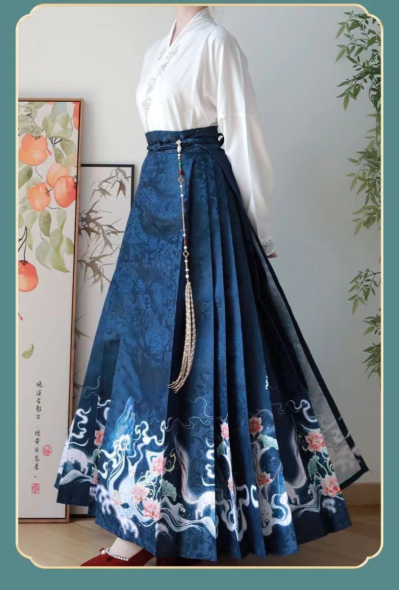 Новинка 2023: Длинная плиссированная юбка Ханьфу для взрослых, модифицированная юбка в стиле «мамиан», китайский стиль, юбка-полусолнце, женский костюм, новый национальный тренд в китайском стиле.