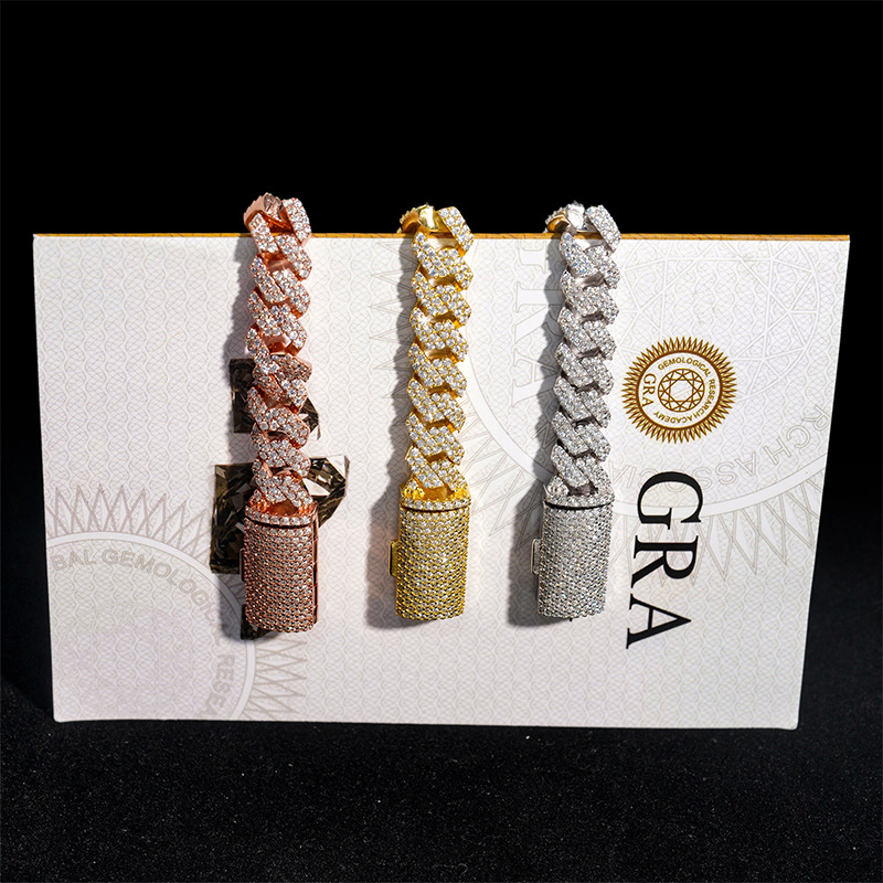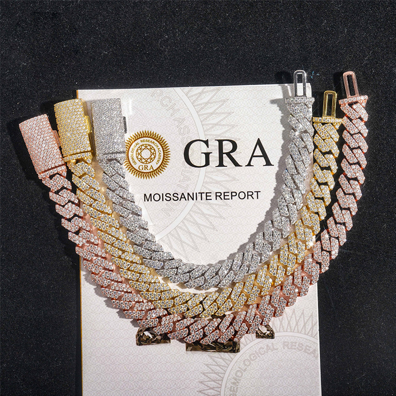 Трансграничная торговля Специально для 925 серебряных моассанов кубинская цепь 10 мм двойной ряд камня полный хип-хоп прилив ювелирное ожерелье