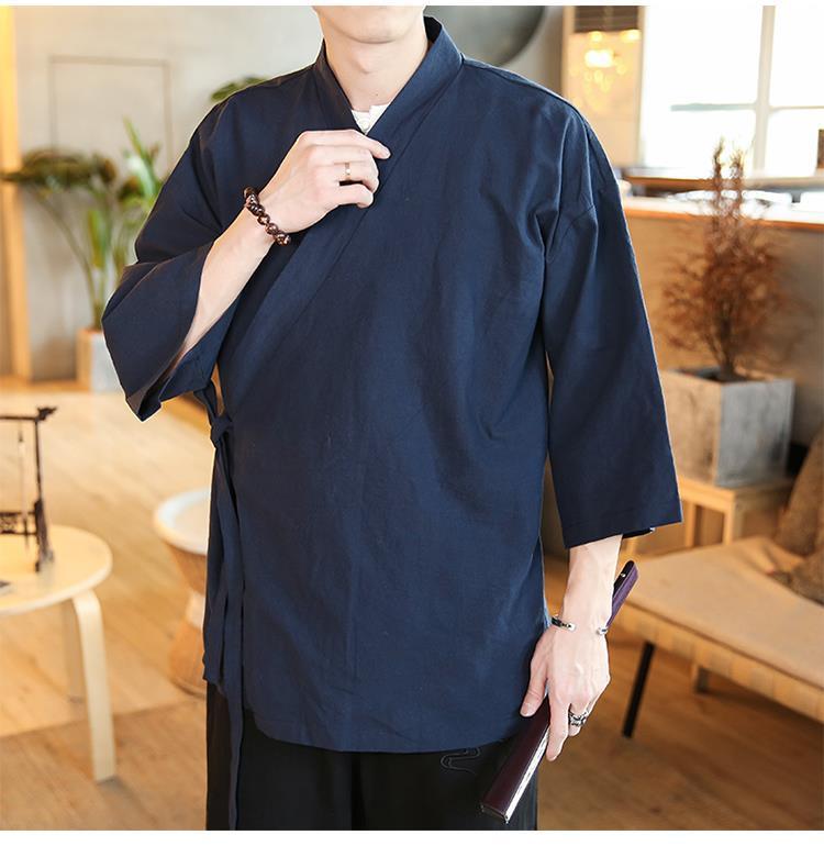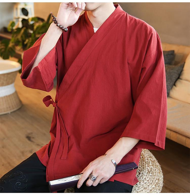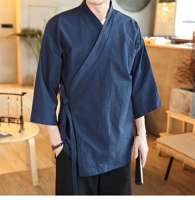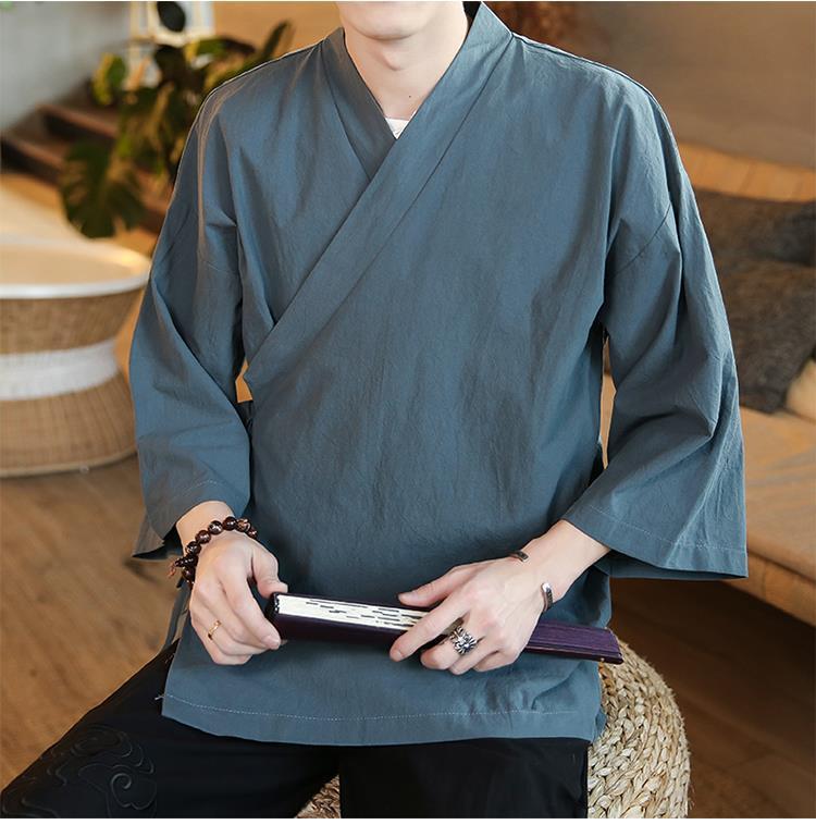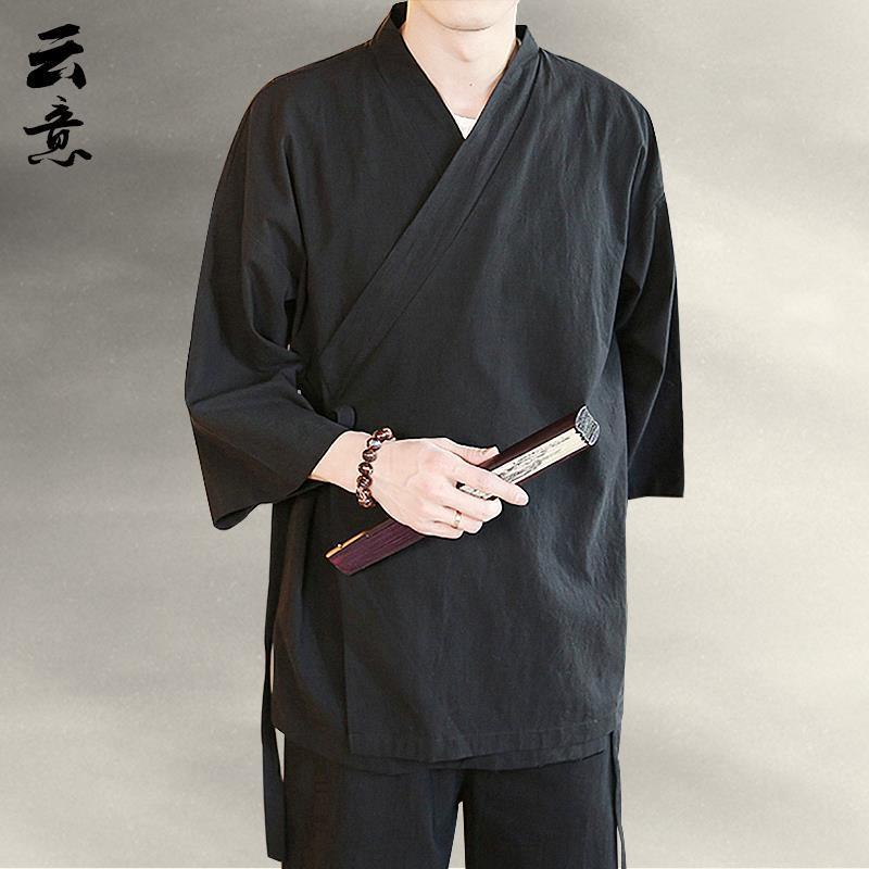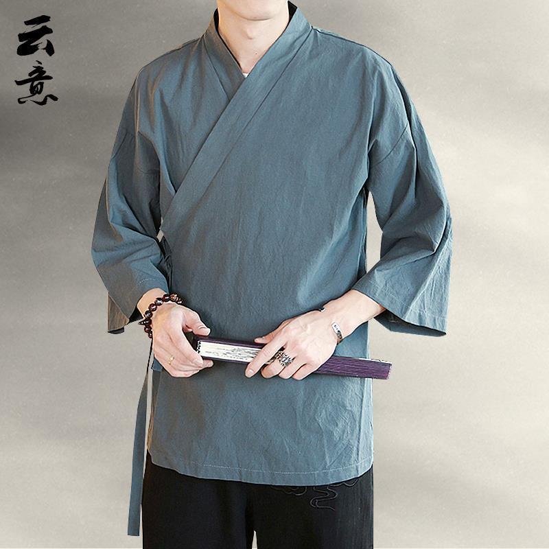 Семь рукавов Hanfu мужской летний китайский стиль диагональный топ