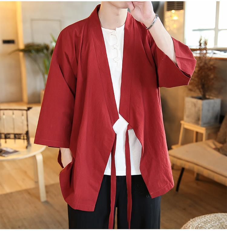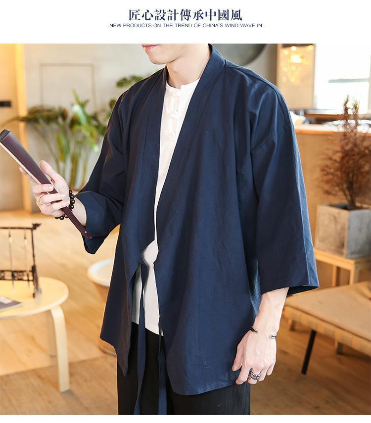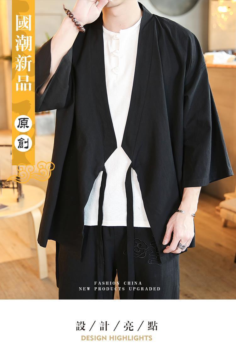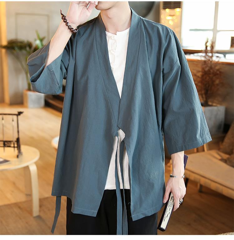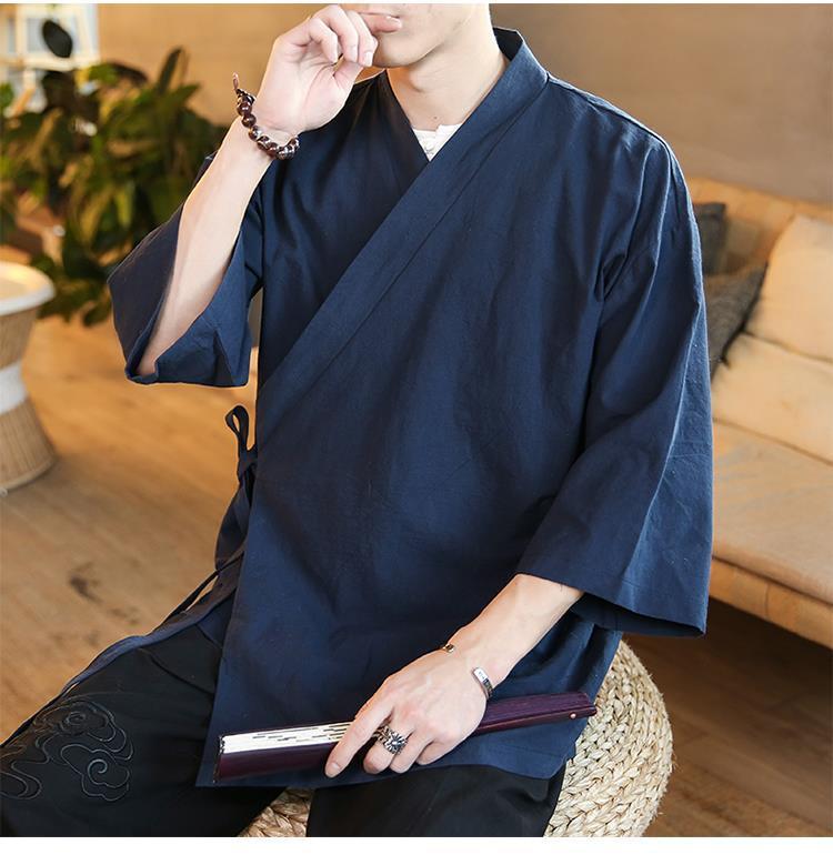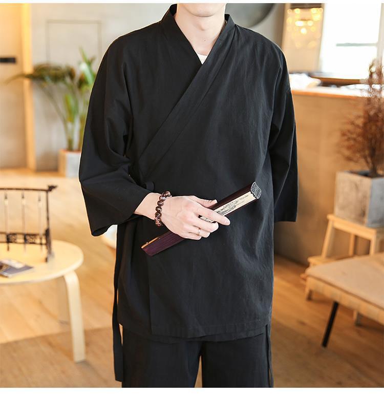 Семь рукавов Hanfu мужской летний китайский стиль диагональный топ